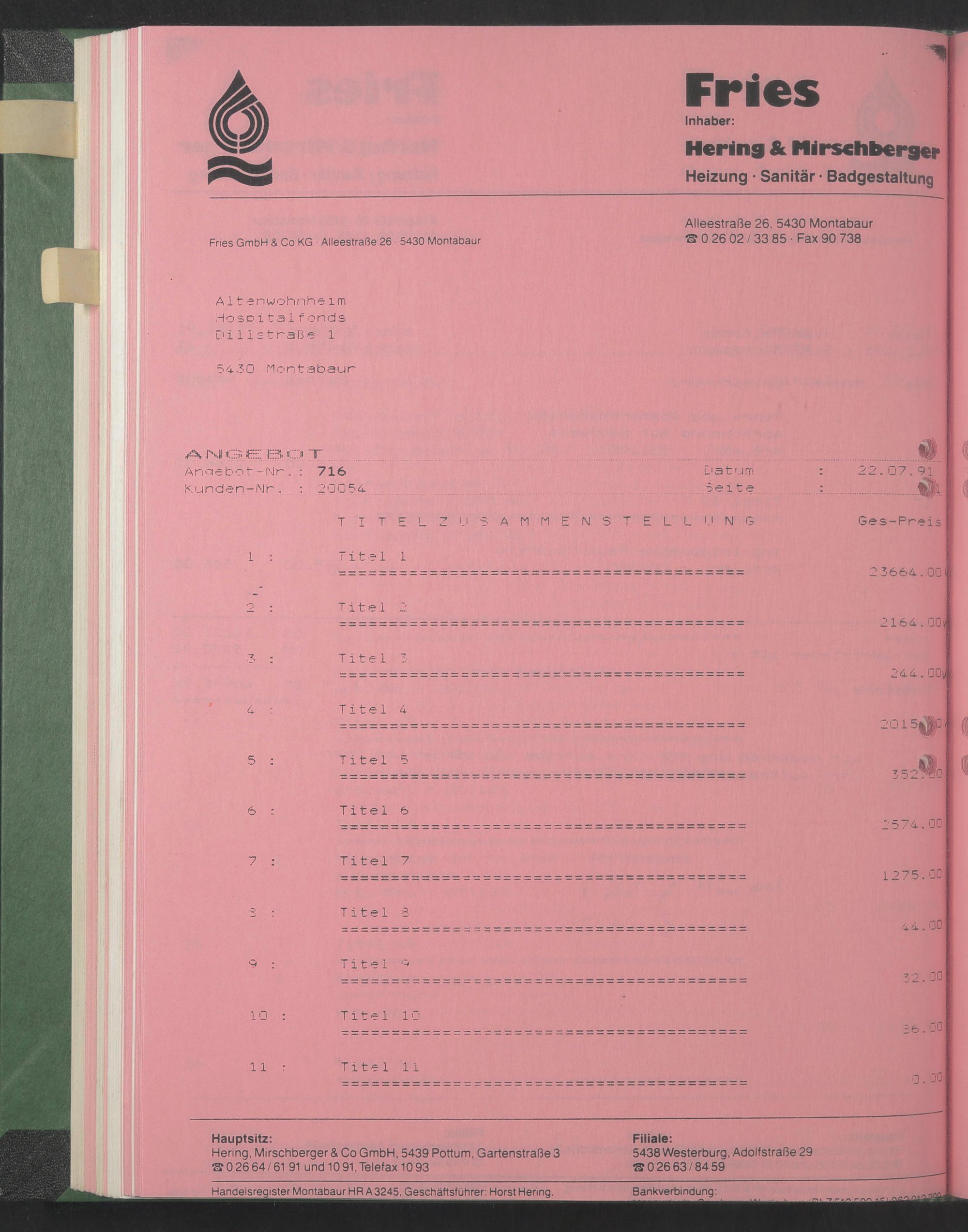 Hering, Mirschberger & Co GmbH, 5439 Pottum, Gartenstraße 3 S026 64/61 91 und 10 91, Telefax 10 93