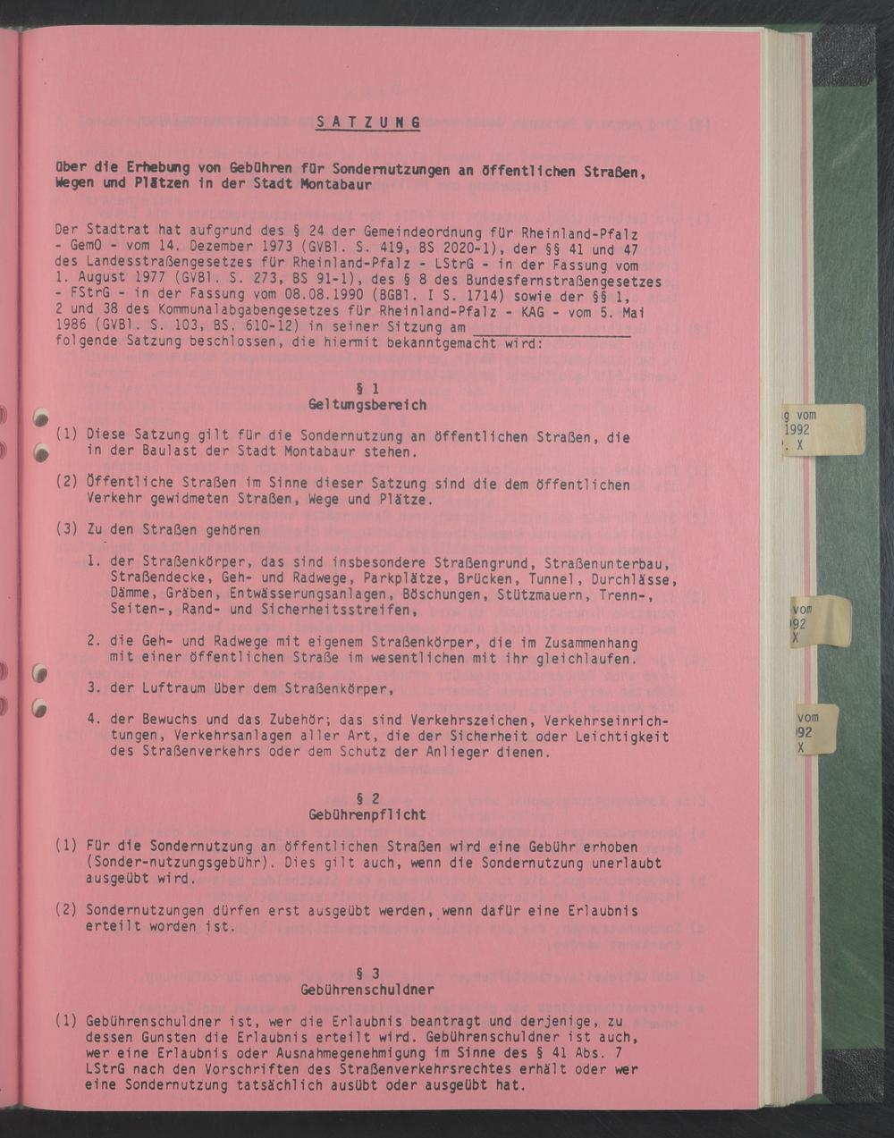 - GemO - vom 14. Dezember 1973 (GVB1. S. 419, BS 2020-1), der §§ 41 und 47 des Landesstraßengesetzes für Rheinland-Pfalz - LStrG - in der Fassung vom