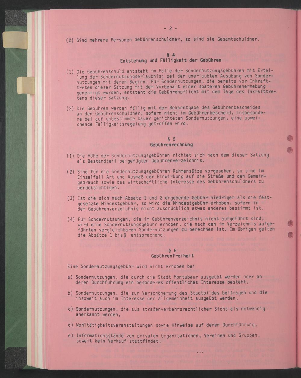 (1) Die GebUhrenschuld entsteht im Falle der Sondernutzungsgebühren mit Erteilung der Sondernutzungserlaubnis; bei der unerlaubten Ausübung von Sondernutzungen mit deren Beginn, Für Sondernutzungen, die bereits vor Inkrafttreten dieser Satzung mit dem Vorbehalt einer späteren Gebührenerhebung genehmigt wurden, entsteht die Gebührenpflicht mit dem Tage des Inkrafttretens dieser Satzung.