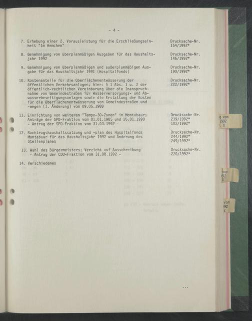 12. Nachtragshaushaltssatzung und -plan des Hospitalfonds Montabaur für das Haushaltsjahr 1992 und Änderung des Stellenplanes