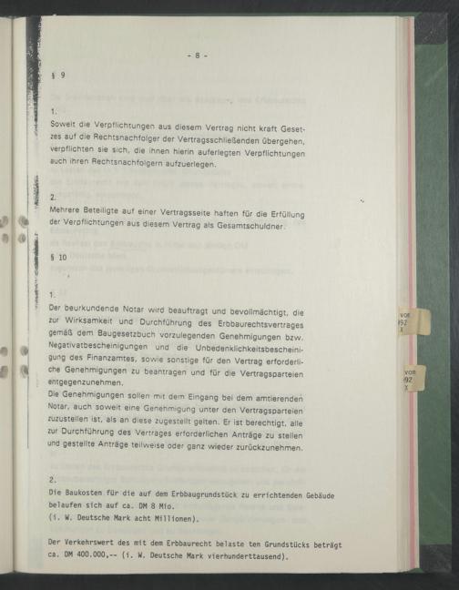 Die Baukosten für die auf dem Erbbaugrundstück zu errichtenden Gebäude belaufen sich auf ca. DM 8 Mio.