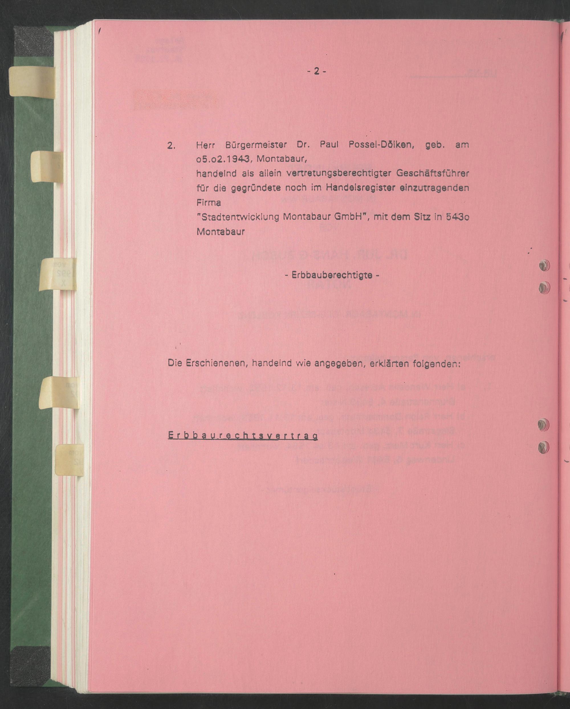 2. Herr Bürgermeister Dr. Paul Possel-Dölken, geb. am o5.02.1943, Montabaur,