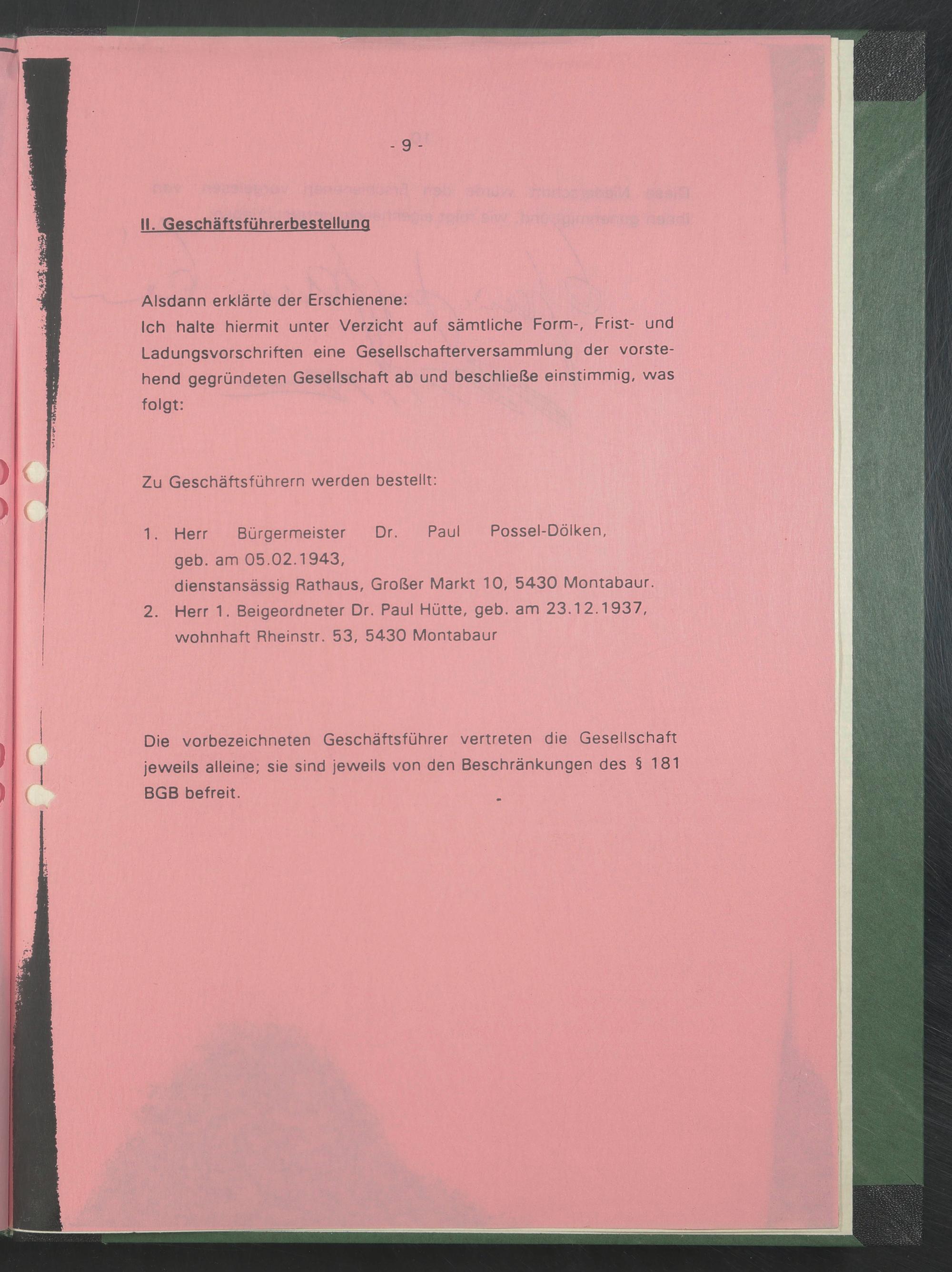 2. Herr 1. Beigeordneter Dr. Paul Hütte, geb. am 23.12.1937, wohnhaft Rheinstr. 53, 5430 Montabaur