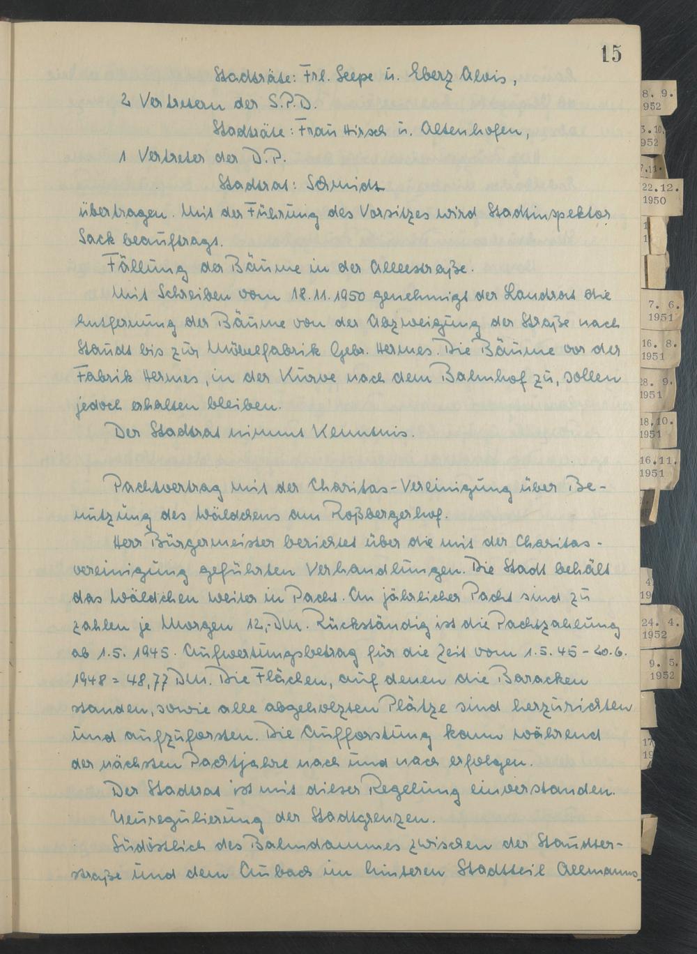 Stadtratssitzungen 1950 - 1952