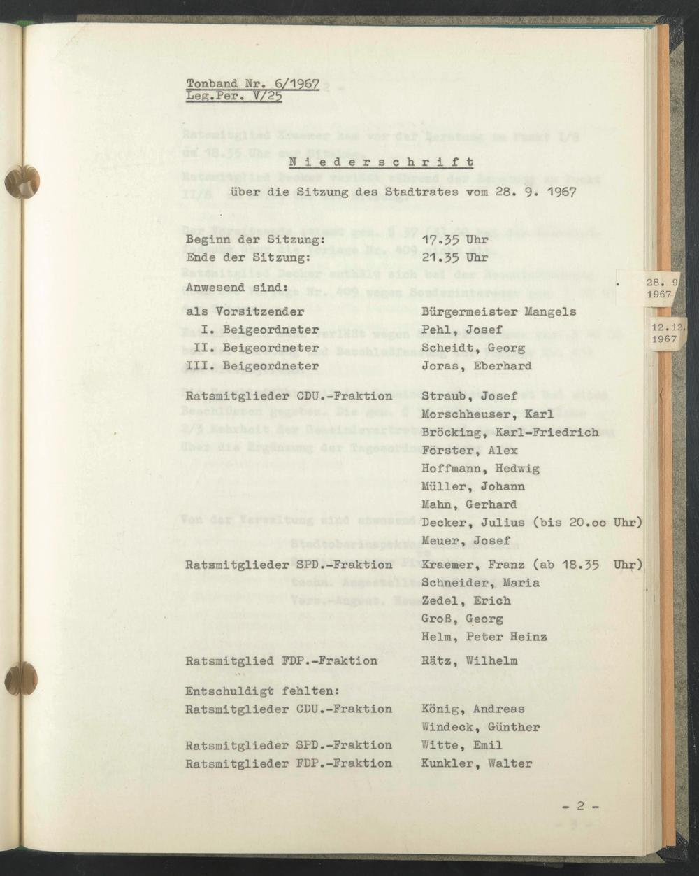 Sitzung 28. September 1967