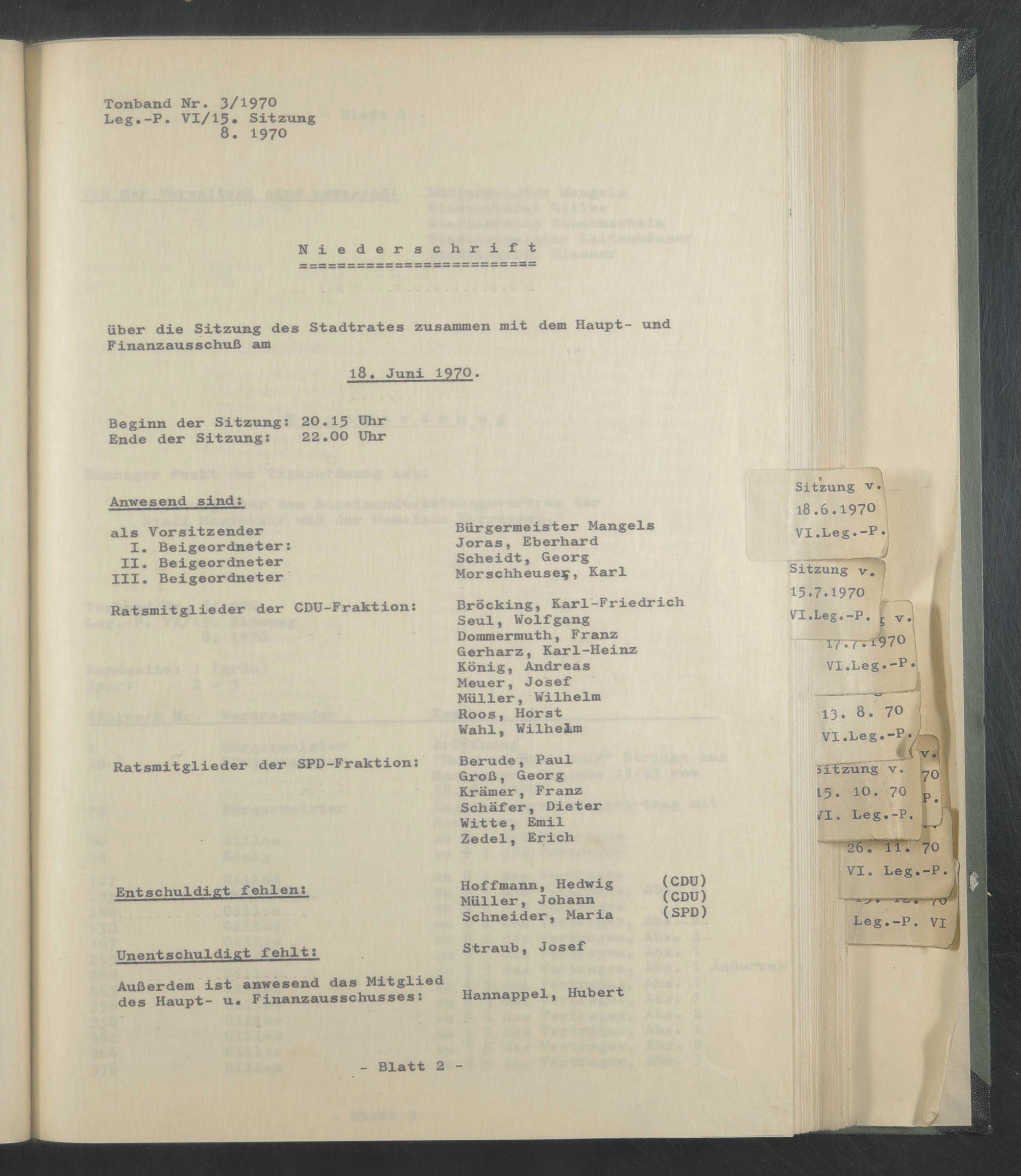 Sitzung 18. Juni 1970