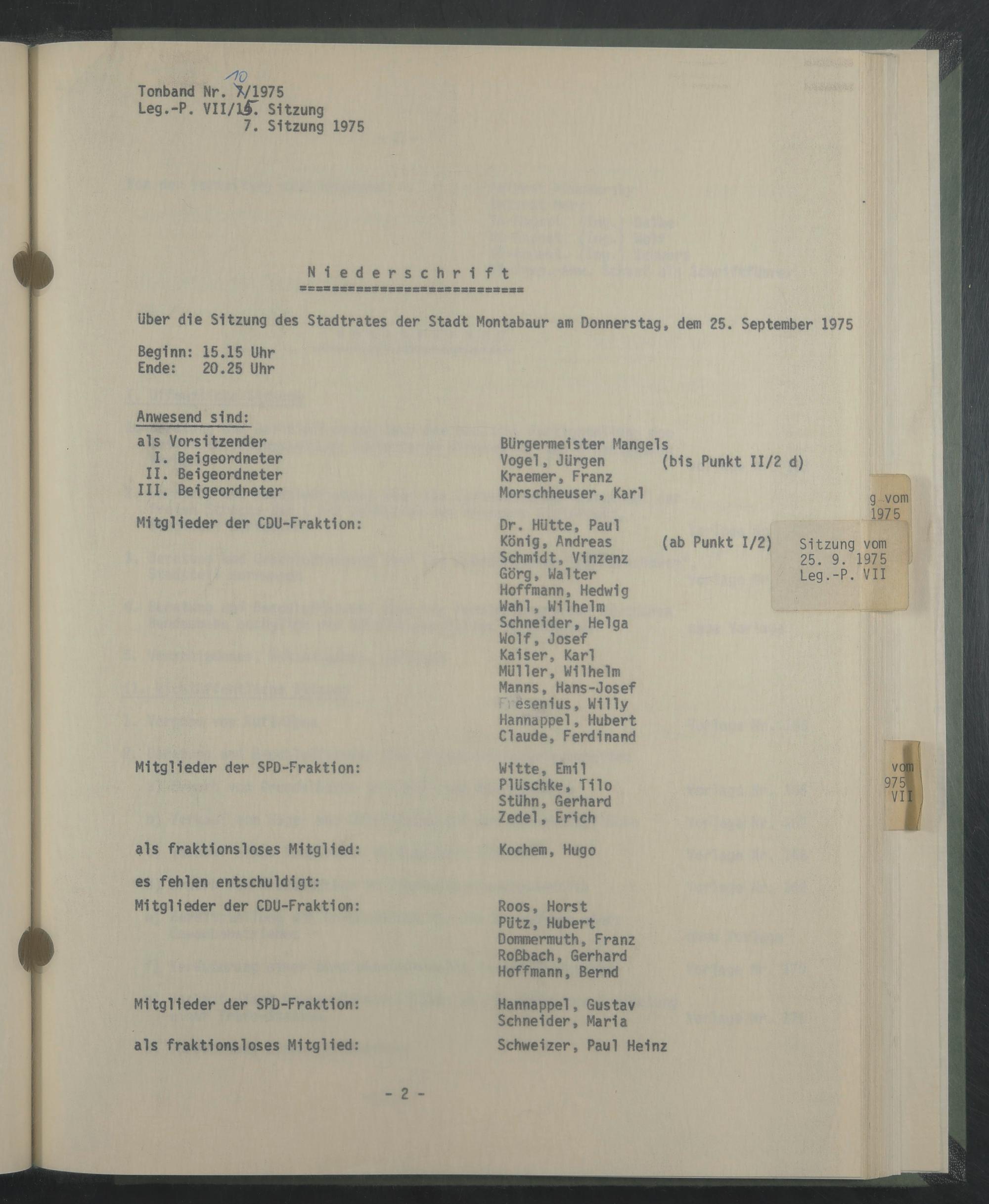 Sitzung 25. September 1975