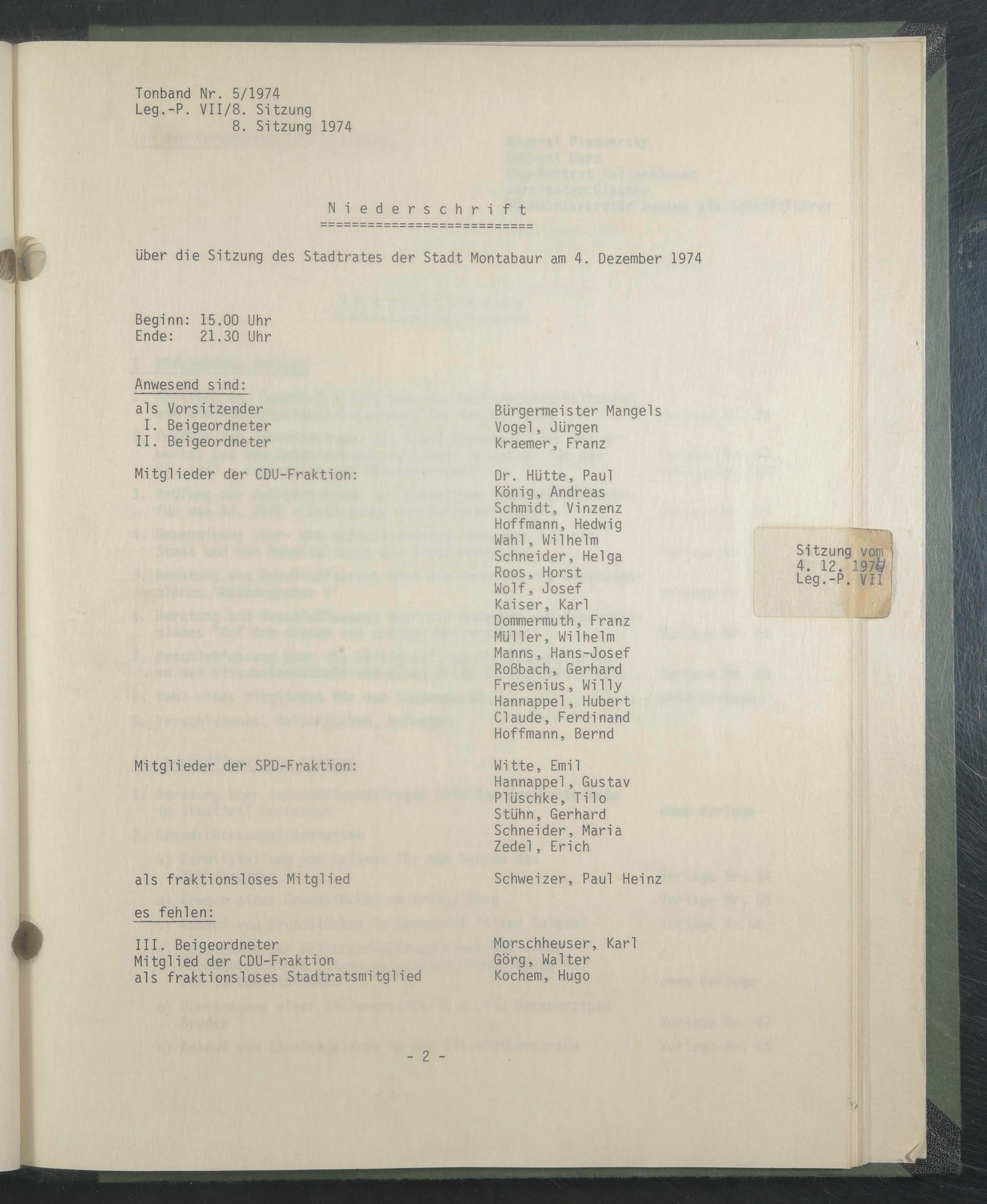 Sitzung 04. Dezember 1974