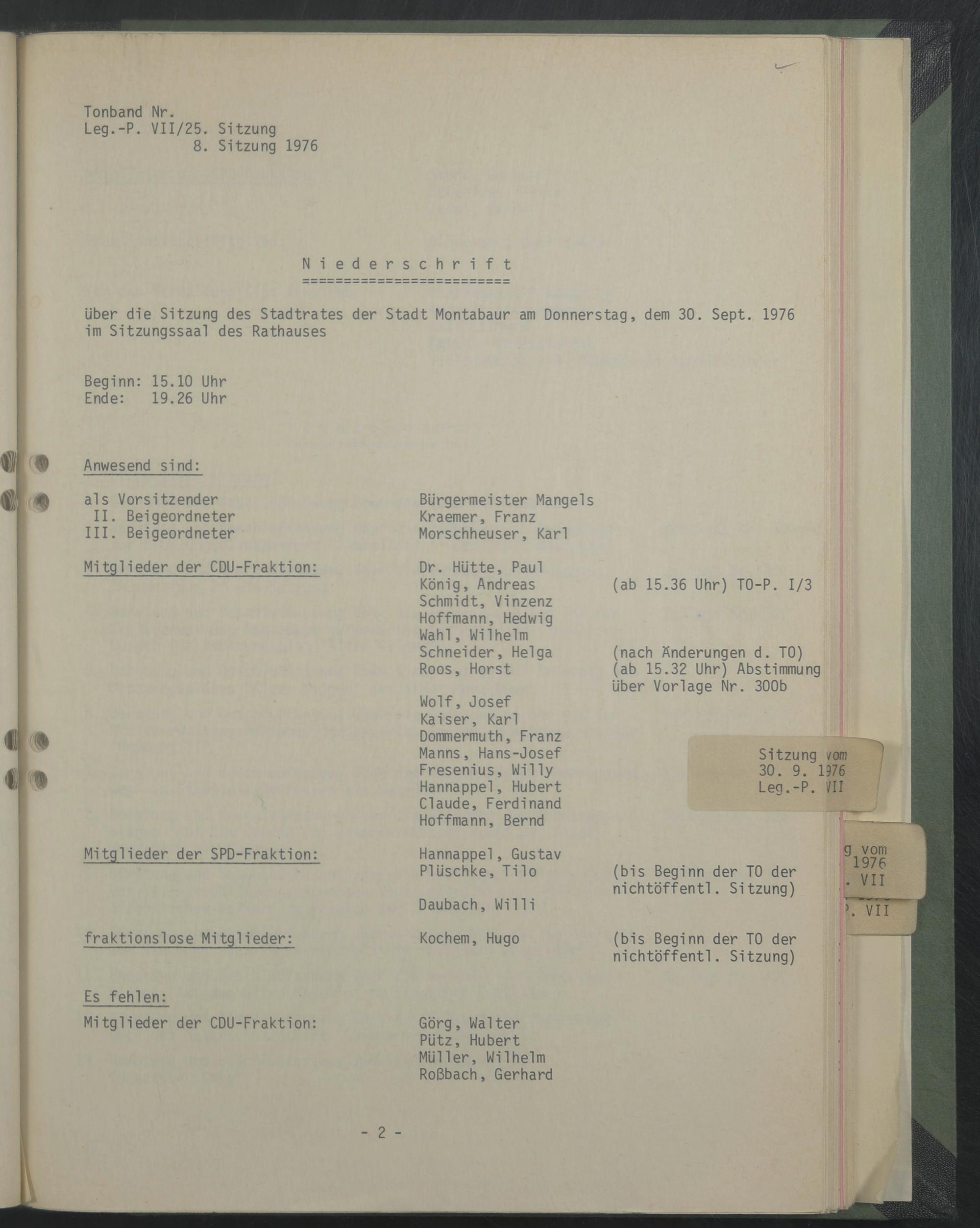 Sitzung 30. September 1976