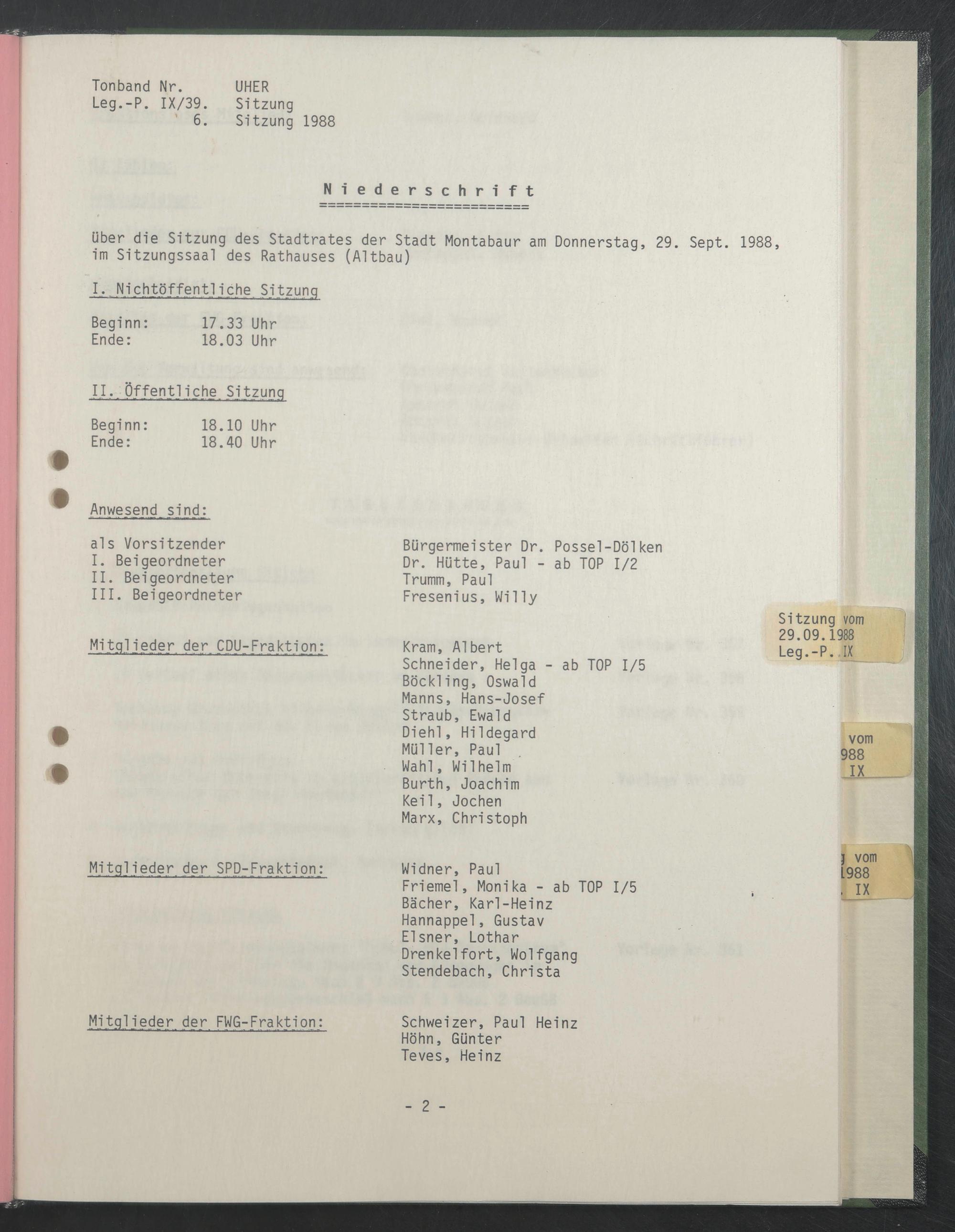 Sitzung 29. September 1988