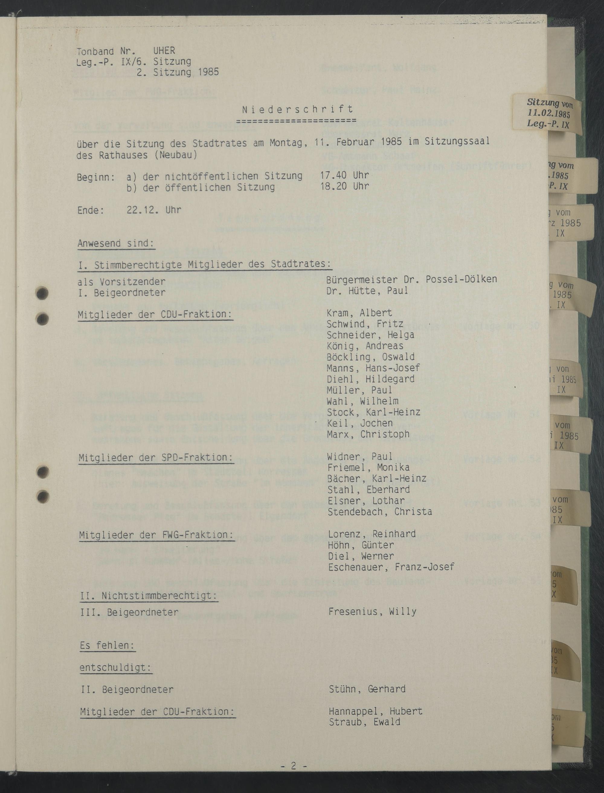 Sitzung 11. Februar 1985