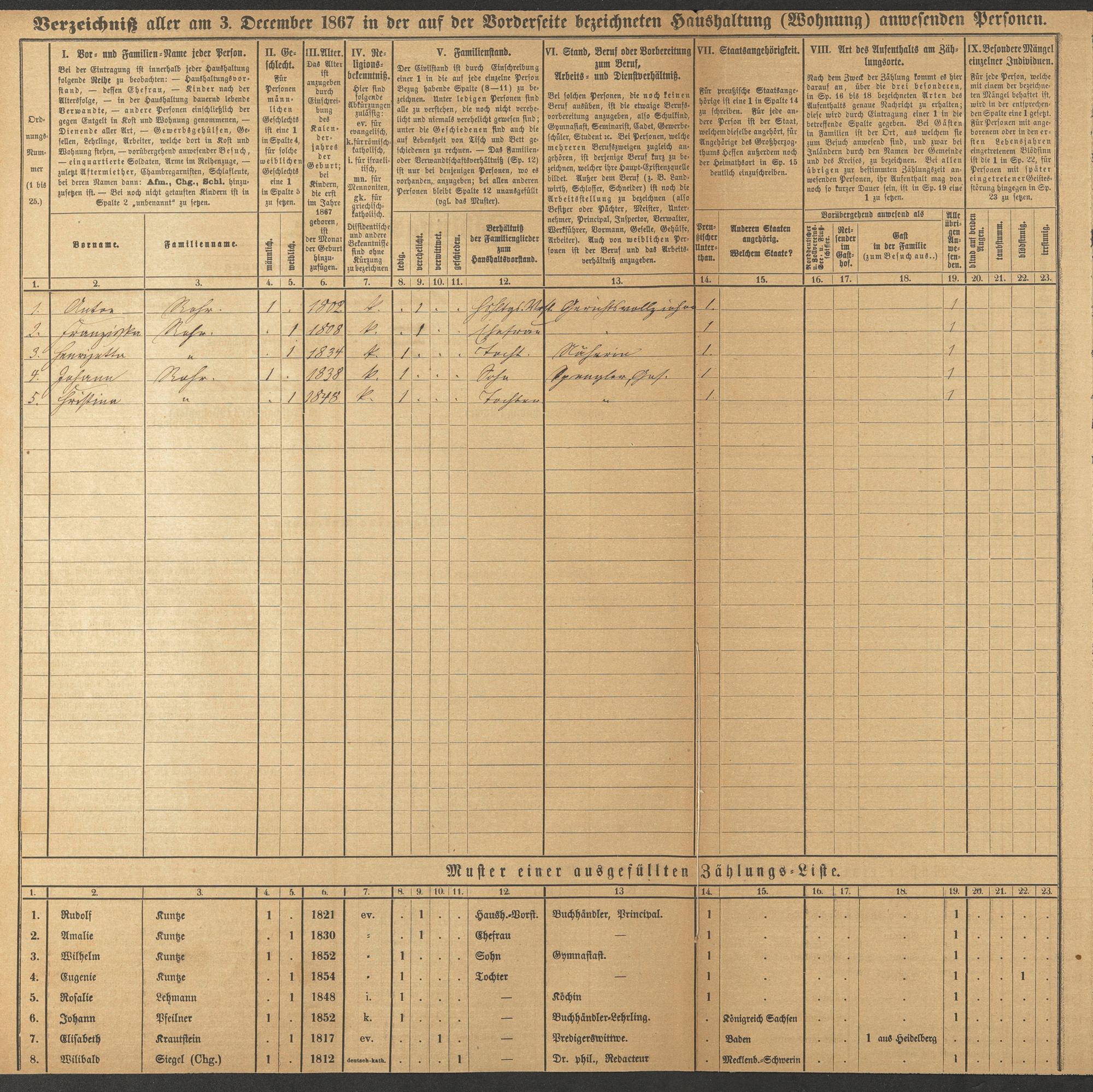 Volkszählung in Preußen 1867, Abt. 4, L 1676 A