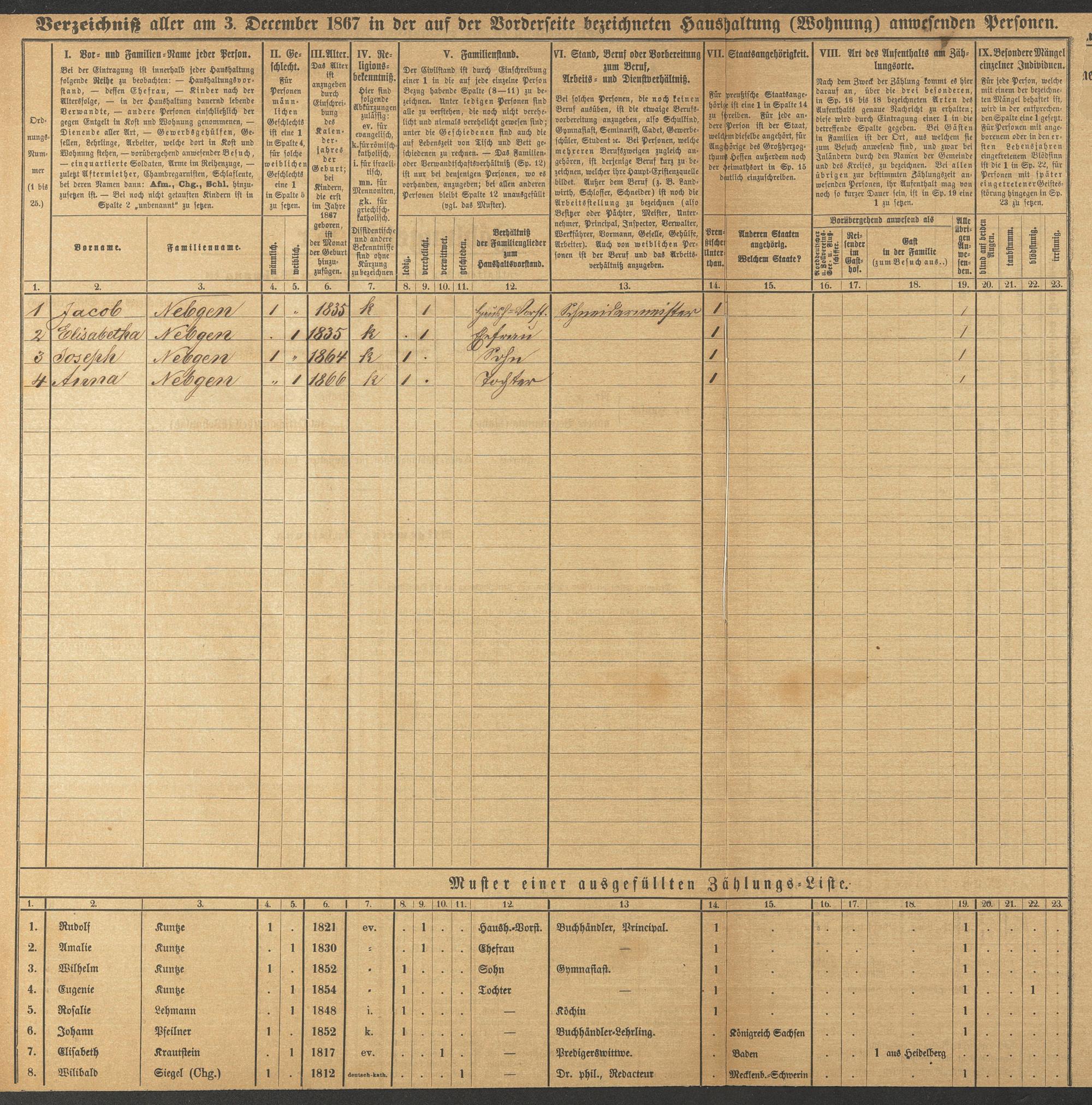 Volkszählung in Preußen 1867, Abt. 4, L 1676 A