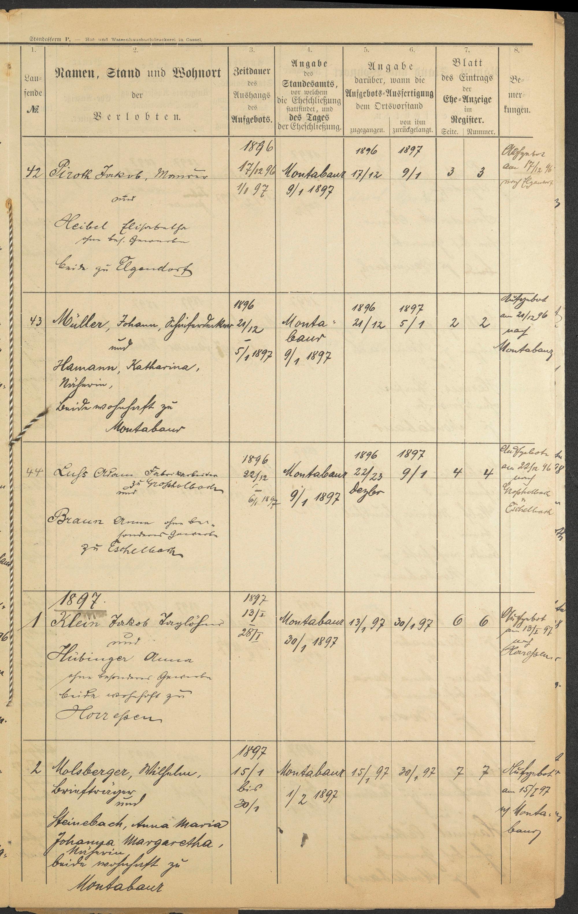 Piroth, Jakob Heibel, Elisabeth Müller, Johann Müller, Katharina geb. Hamann Luß, Adam Braun, Anna Klein, Jakob Hübinger, Anna Molsberger, Wilhelm Steinebach, Anna Maria Johanna Margaretha