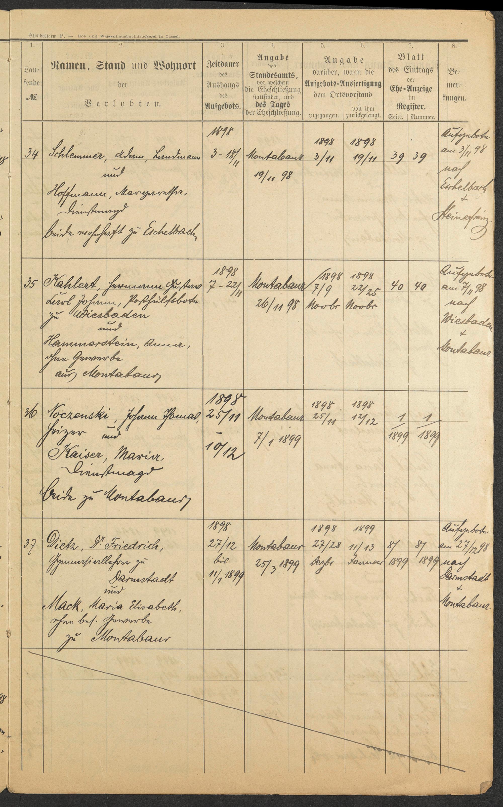 Schlemmer, Adam Hoffmann, Margaretha Kahlert, Hermann Gustv Carl Johann Hammerstein, Anna Noczenski, Johann Thomas Kaiser, Maria Dietz, Friedrich Dr. Mack, Maria Elisabeth