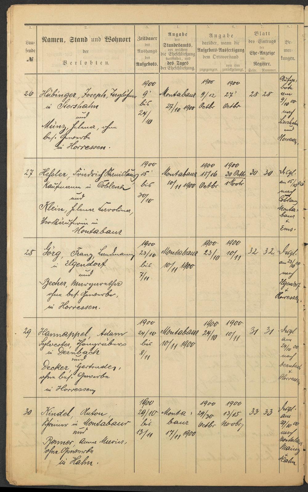 Hübinger, Joseph Münz, Helena Heßler, Friedrich Stanislaus Heßler, Lina geb. Klein Görg, Franz Becher, Margaretha Hannappel, Adam Sylvester Decker, Gertrude Kindel, Anton Kindel, Anna geb. Benner