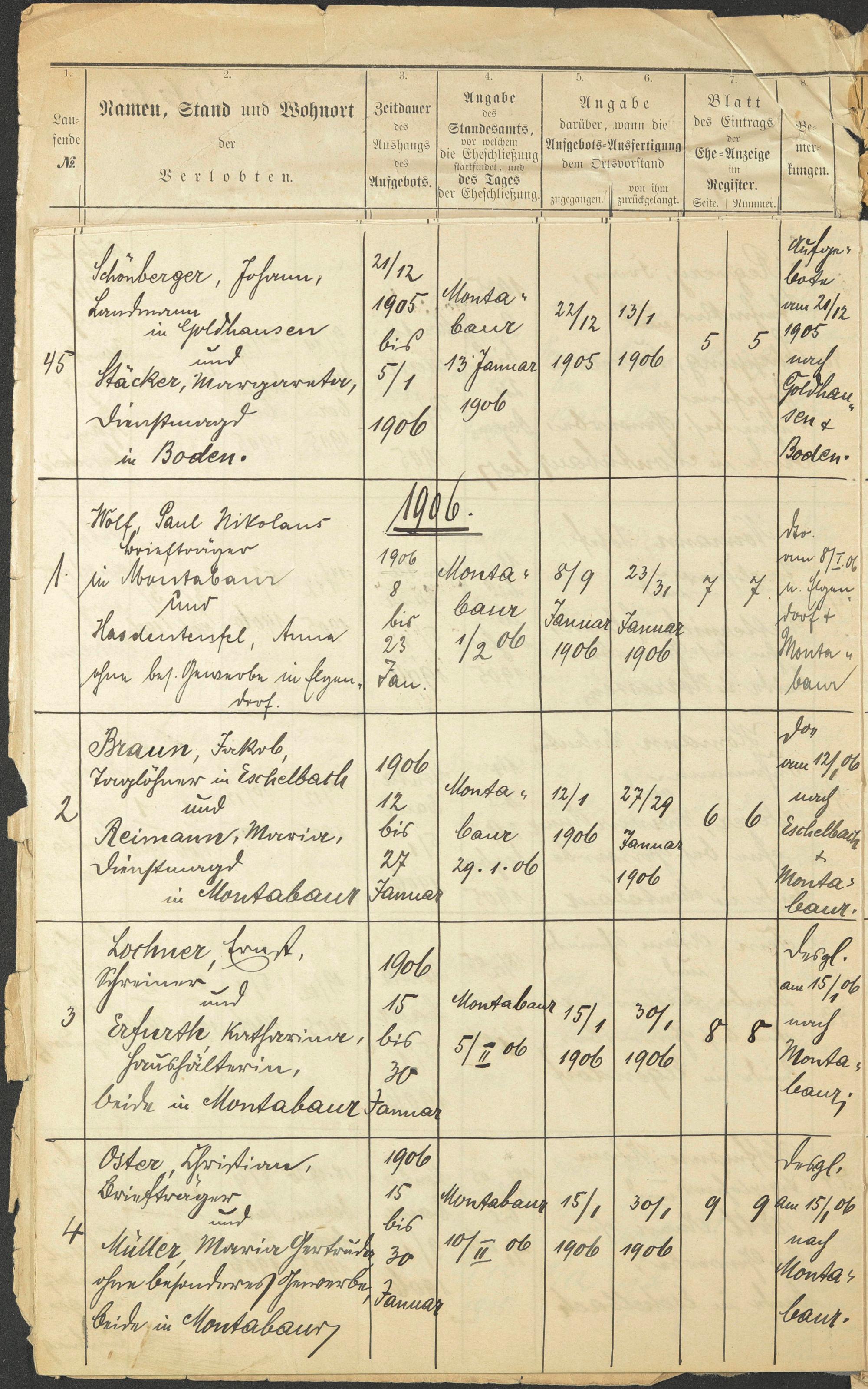 Schönberger, Johann Stäcker, Margareta Wolf, Paul Wolf, Anna geb. Hasdenteufel Braun, Jakob Reimann, Maria Lochner, Ernst Lochner, Katharina geb. Erfurth Oster, Christian Oster, Maria Gertrude geb. Müller