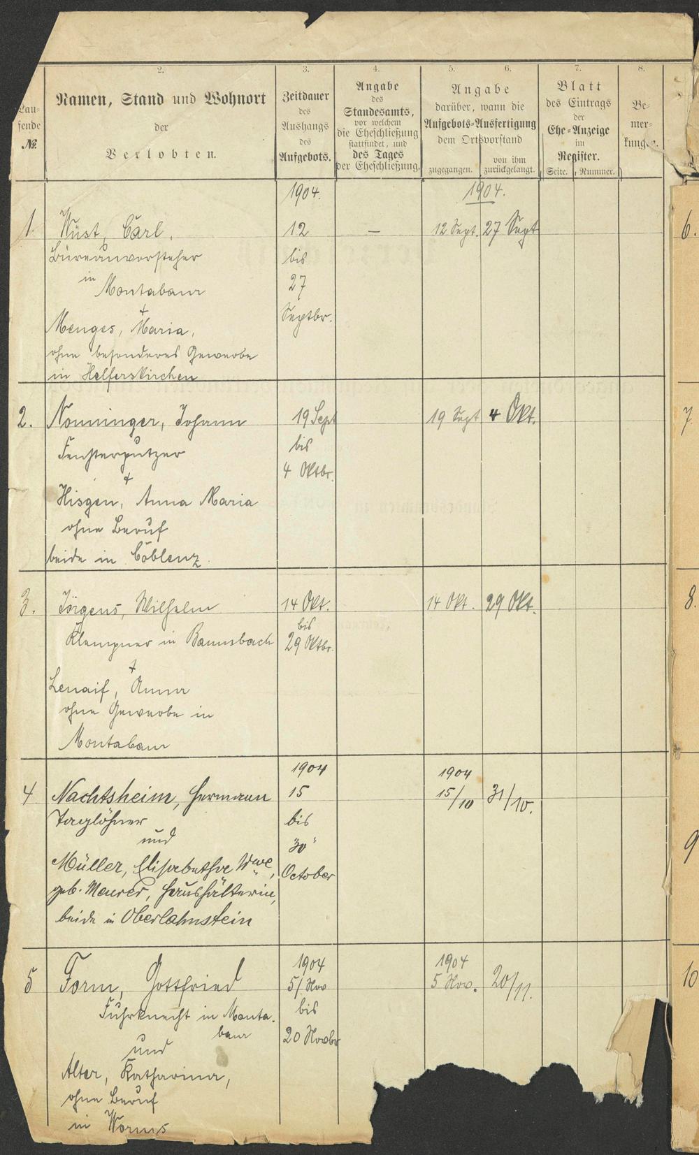 Wüst, Carl Wüst, Maria geb. Menges Nonninger, Johann Hisgen, Anna Maria Jörgens, Wilhelm Lenaif, Anna Nachtsheim, Hermann Müller, Elisabetha geb. Meurer Form, Gottfried Form, Katharina