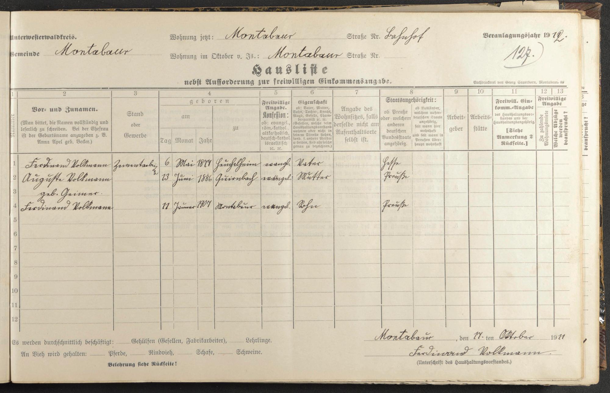 Haushaltsliste 1912, Band I. , Abteilung 4, A 274