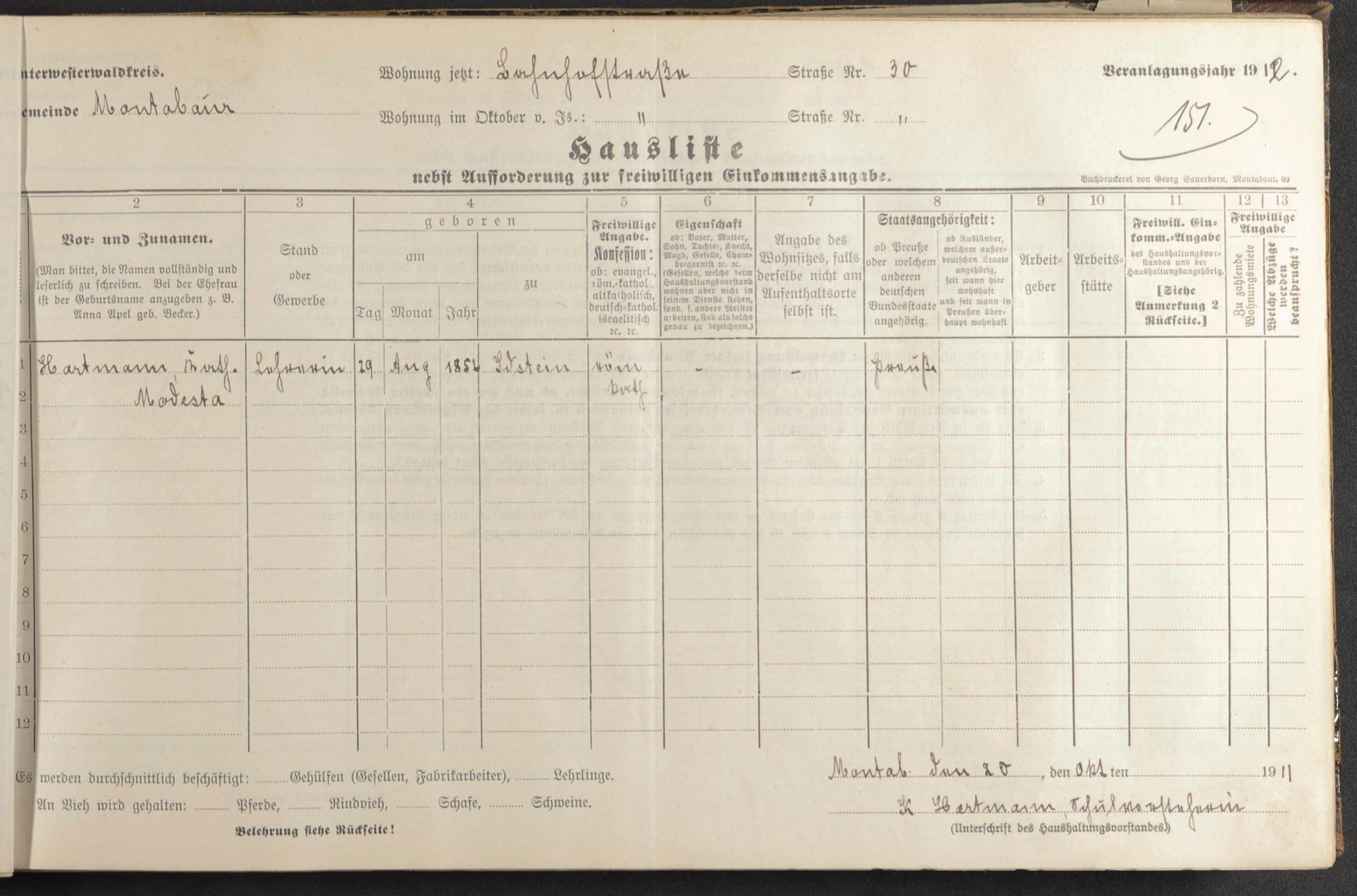 Haushaltsliste 1912, Band I. , Abteilung 4, A 274