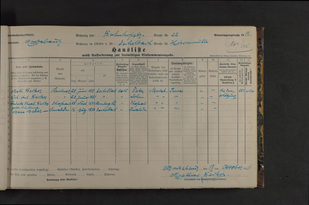Haushaltsliste 1912, Band I. , Abteilung 4, A 274