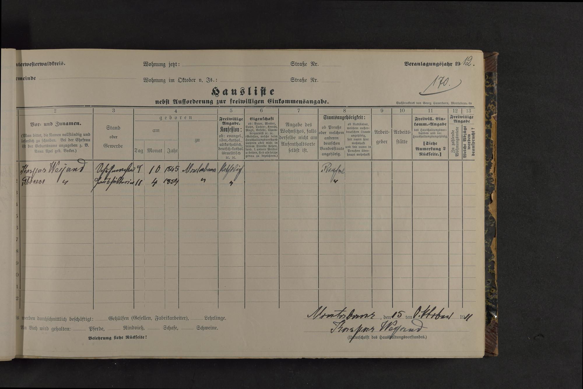 Haushaltsliste 1912, Band I. , Abteilung 4, A 274