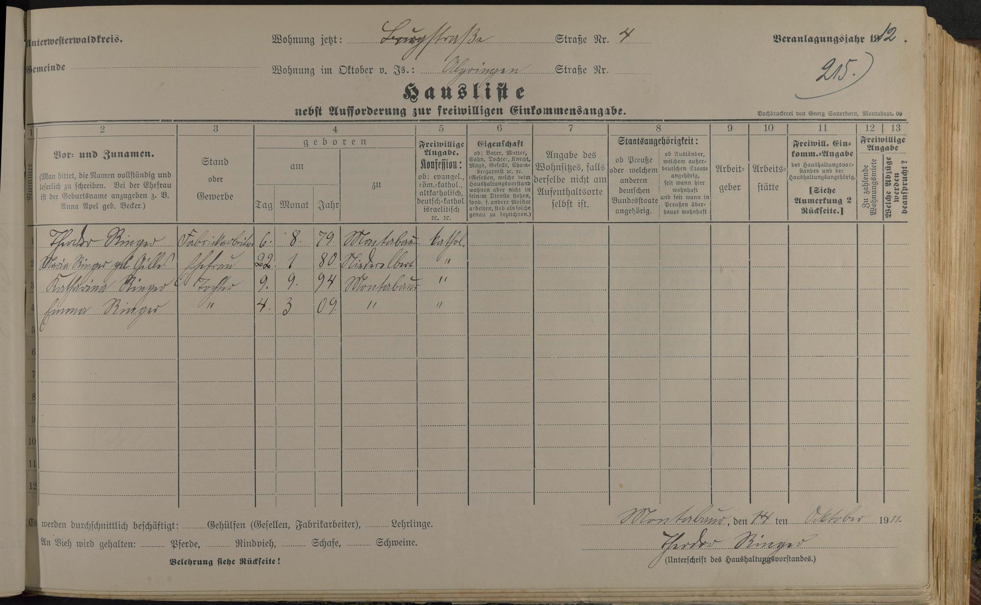 Haushaltsliste 1912, Band I. , Abteilung 4, A 274