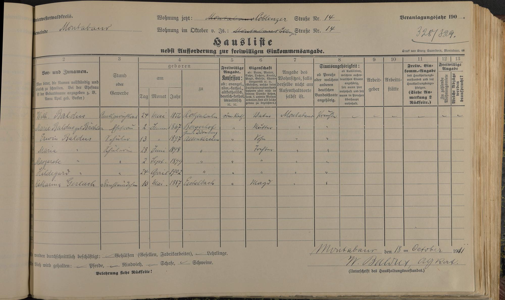 Baldus, Wilhelm Baldus, Marie geb. Bächler Baldus, Erwin Baldus, Maria Baldus, Margarete Baldus, Hildegard Gerlach, Katharina
