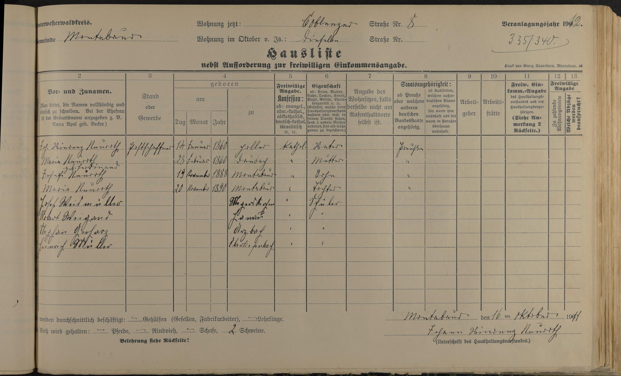 Neuroth, Johann Vincenz Neuroth, Maria geb. Ferdinand Neuroth, Josef Neuroth, Maria Weidmüller, Josef Weigand, Robert Gerharz, Stephan Müller, Heinrich