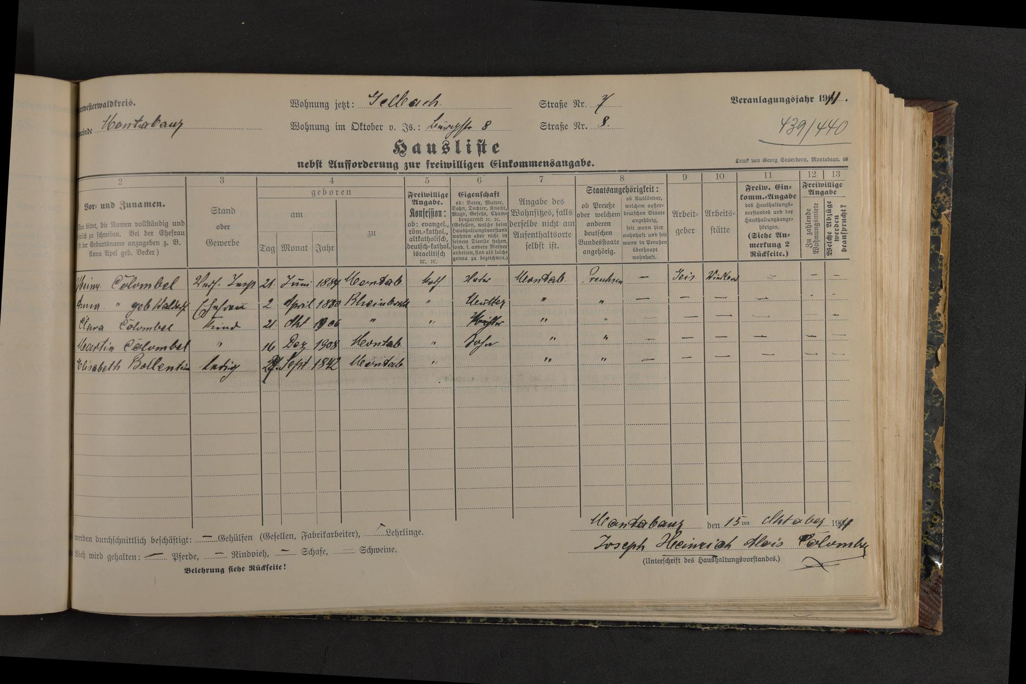 Haushaltsliste 1912, Band I. , Abteilung 4, A 274