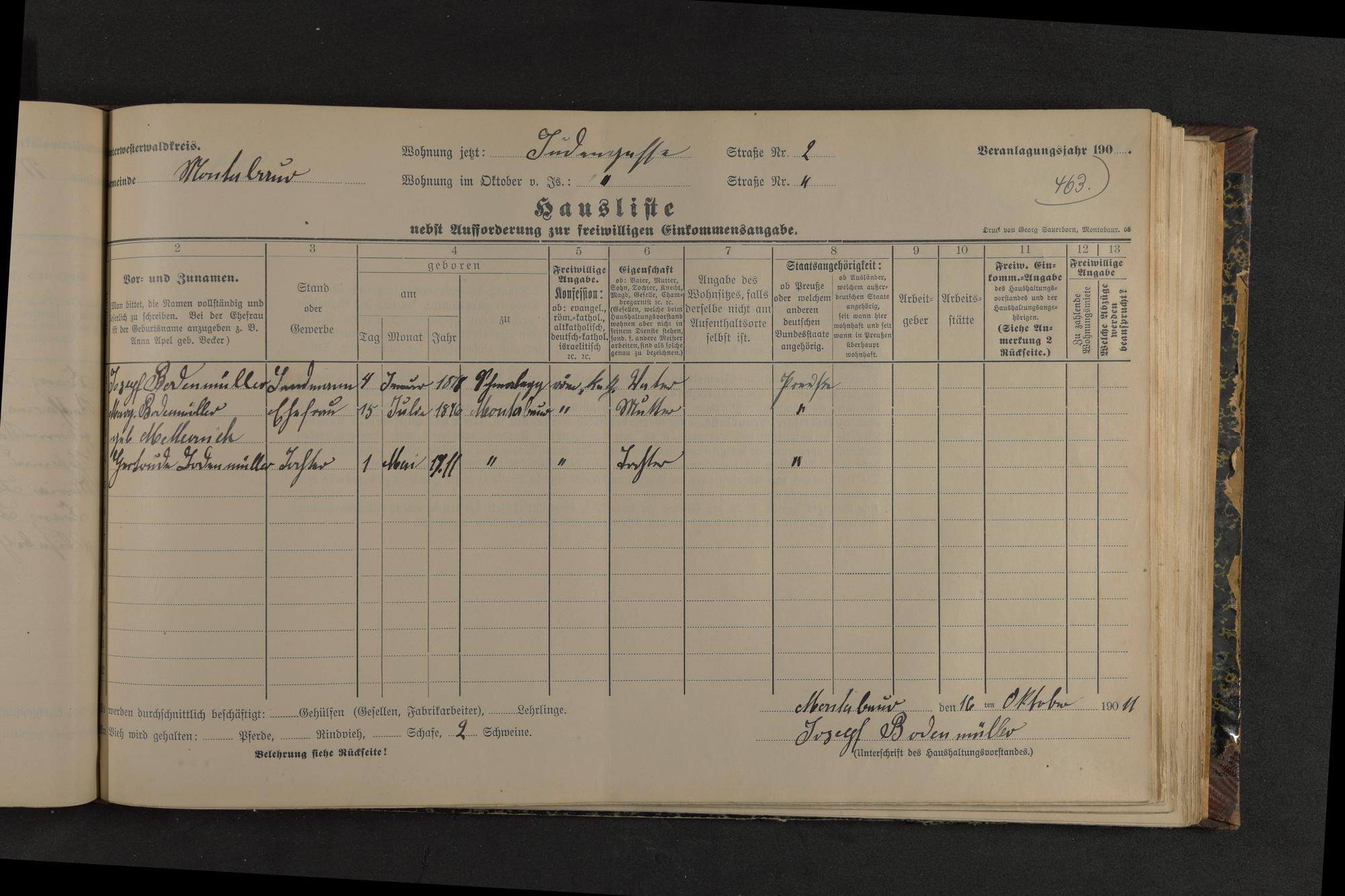 Haushaltsliste 1912, Band I. , Abteilung 4, A 274