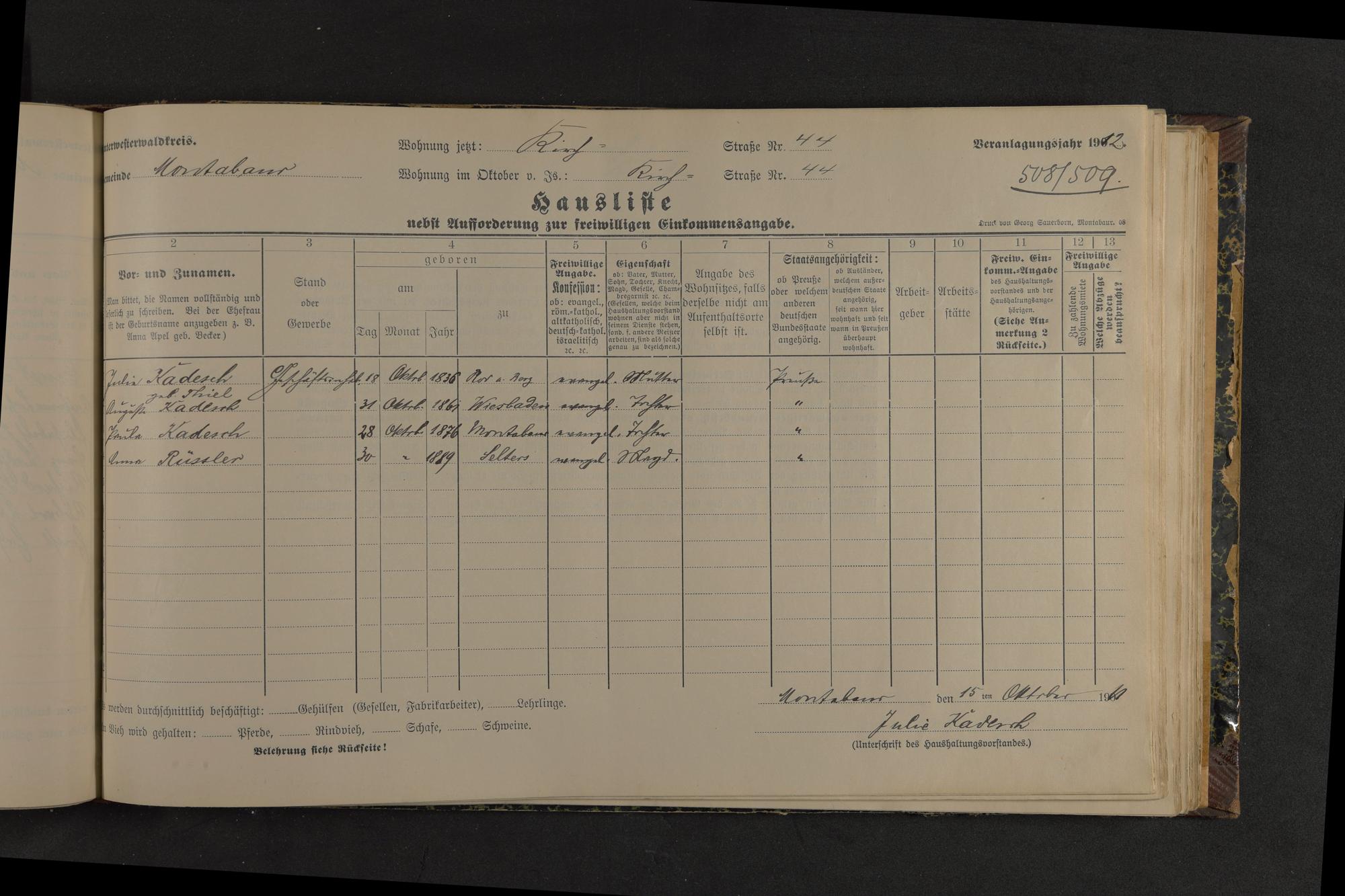 Haushaltsliste 1912, Band I. , Abteilung 4, A 274
