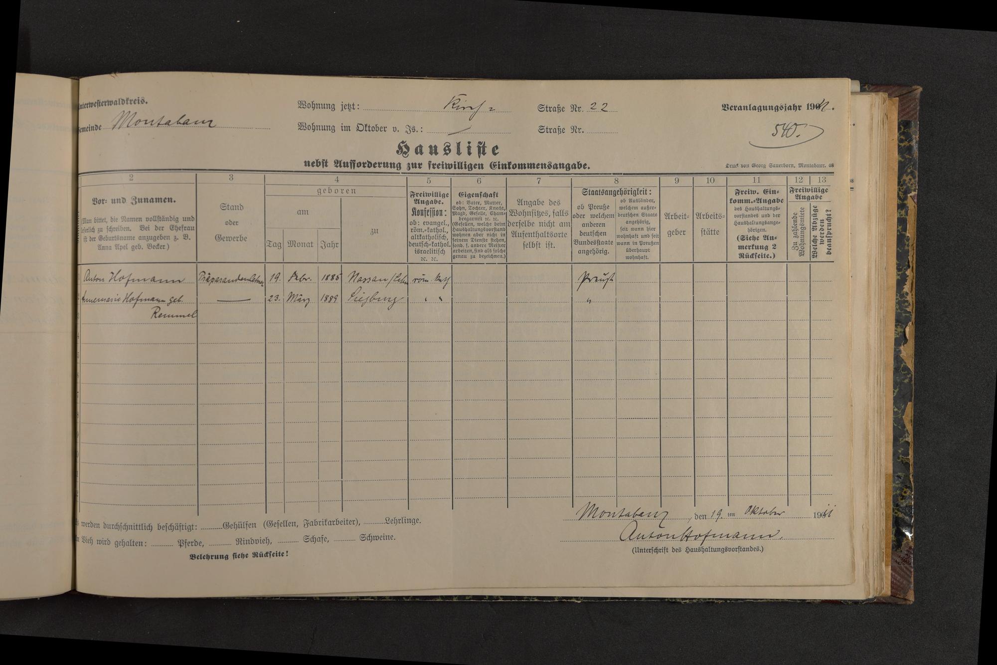 Haushaltsliste 1912, Band I. , Abteilung 4, A 274