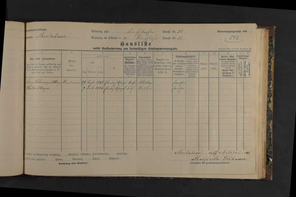 Haushaltsliste 1912, Band I. , Abteilung 4, A 274