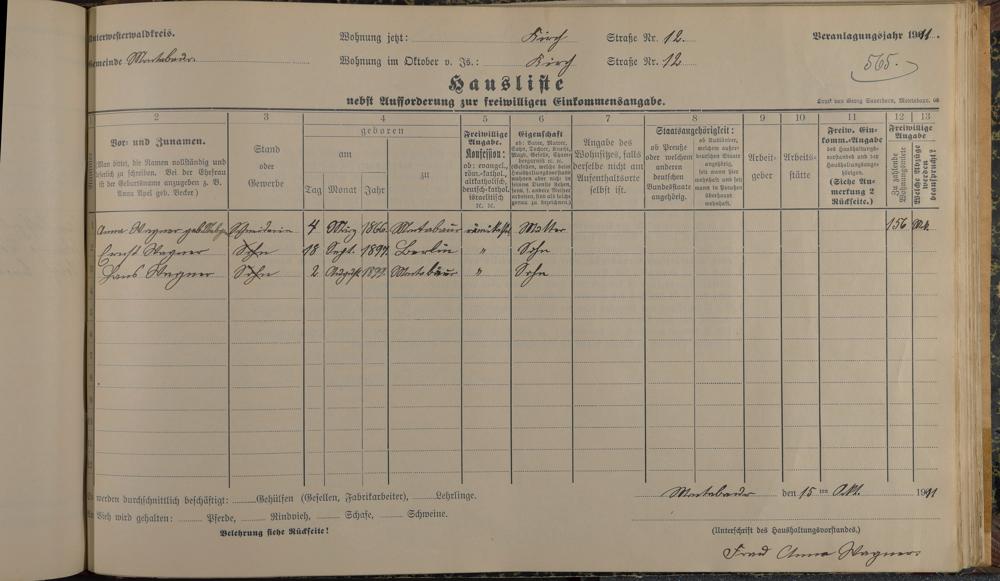 Haushaltsliste 1912, Band I. , Abteilung 4, A 274