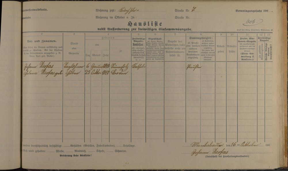 Haushaltsliste 1912, Band I. , Abteilung 4, A 274