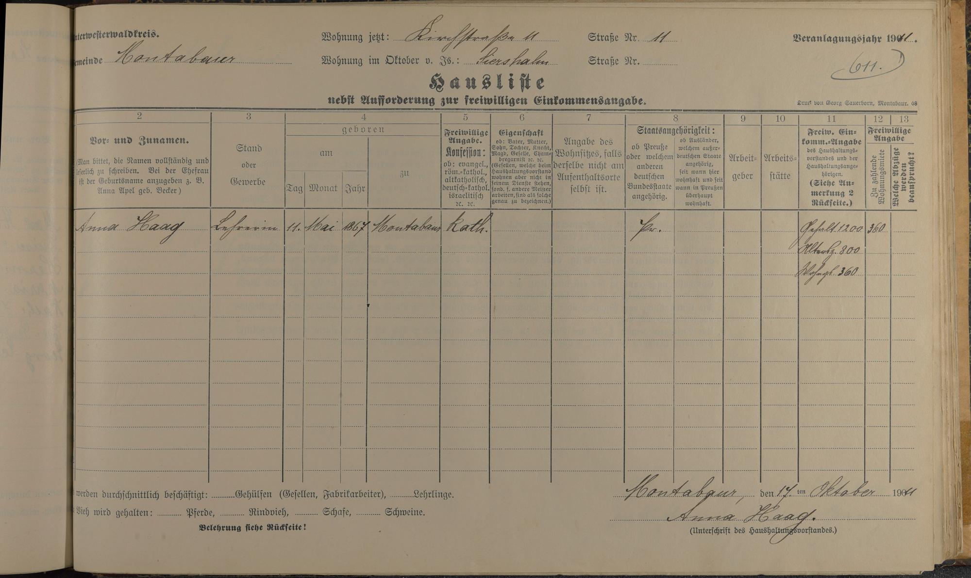 Haushaltsliste 1912, Band I. , Abteilung 4, A 274