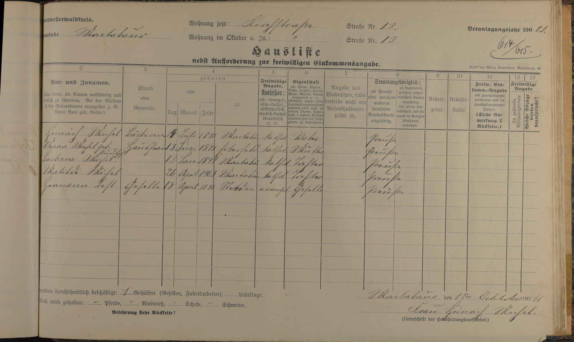Haushaltsliste 1912, Band I. , Abteilung 4, A 274