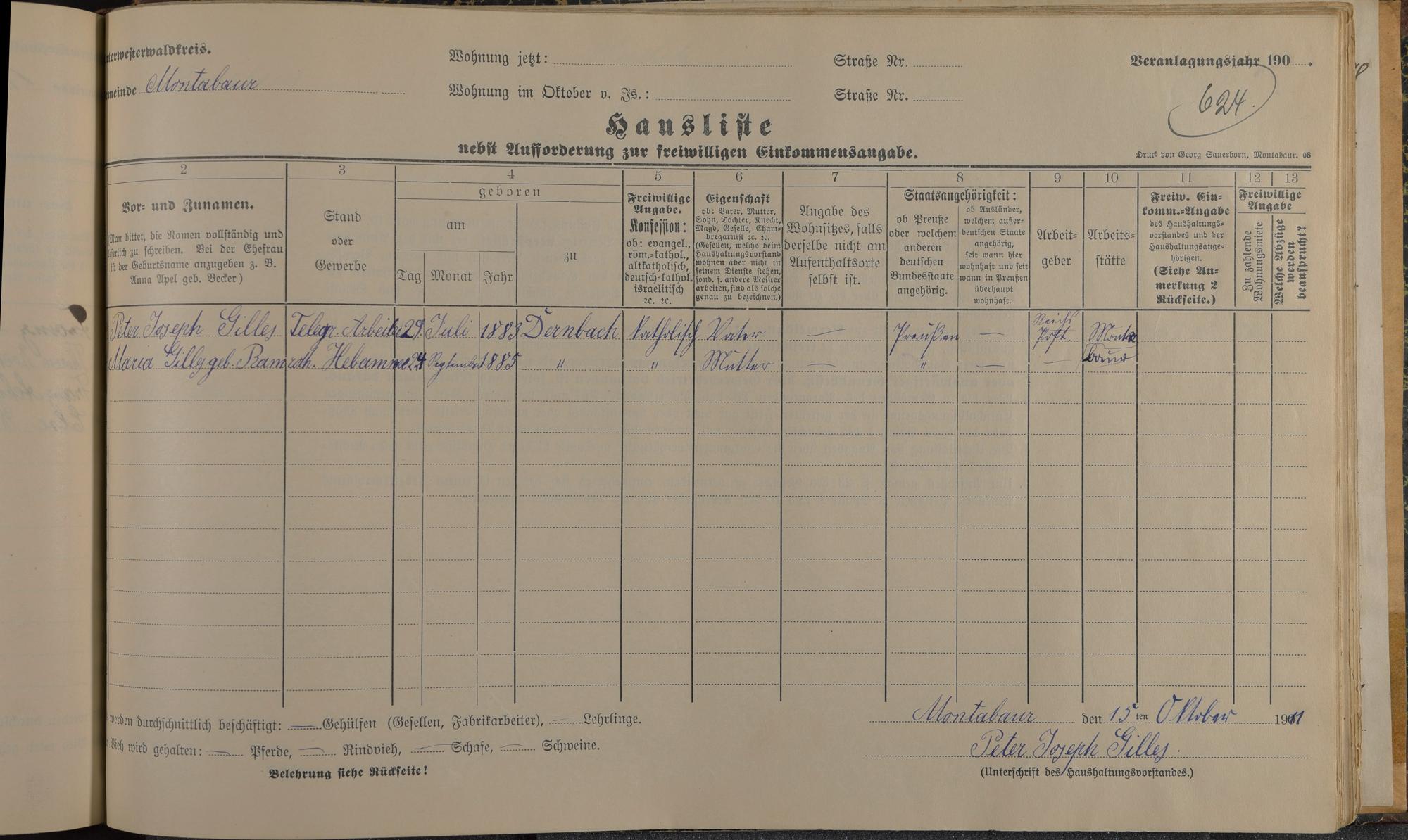 Haushaltsliste 1912, Band I. , Abteilung 4, A 274