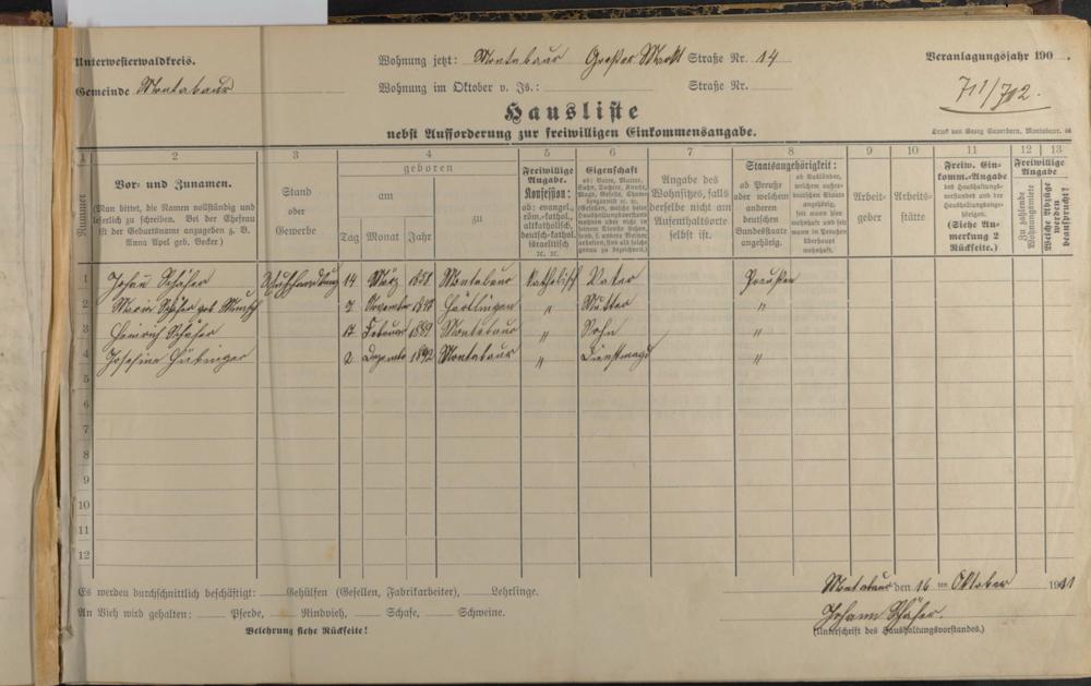 Haushaltsliste 1912, Band I. , Abteilung 4, A 274