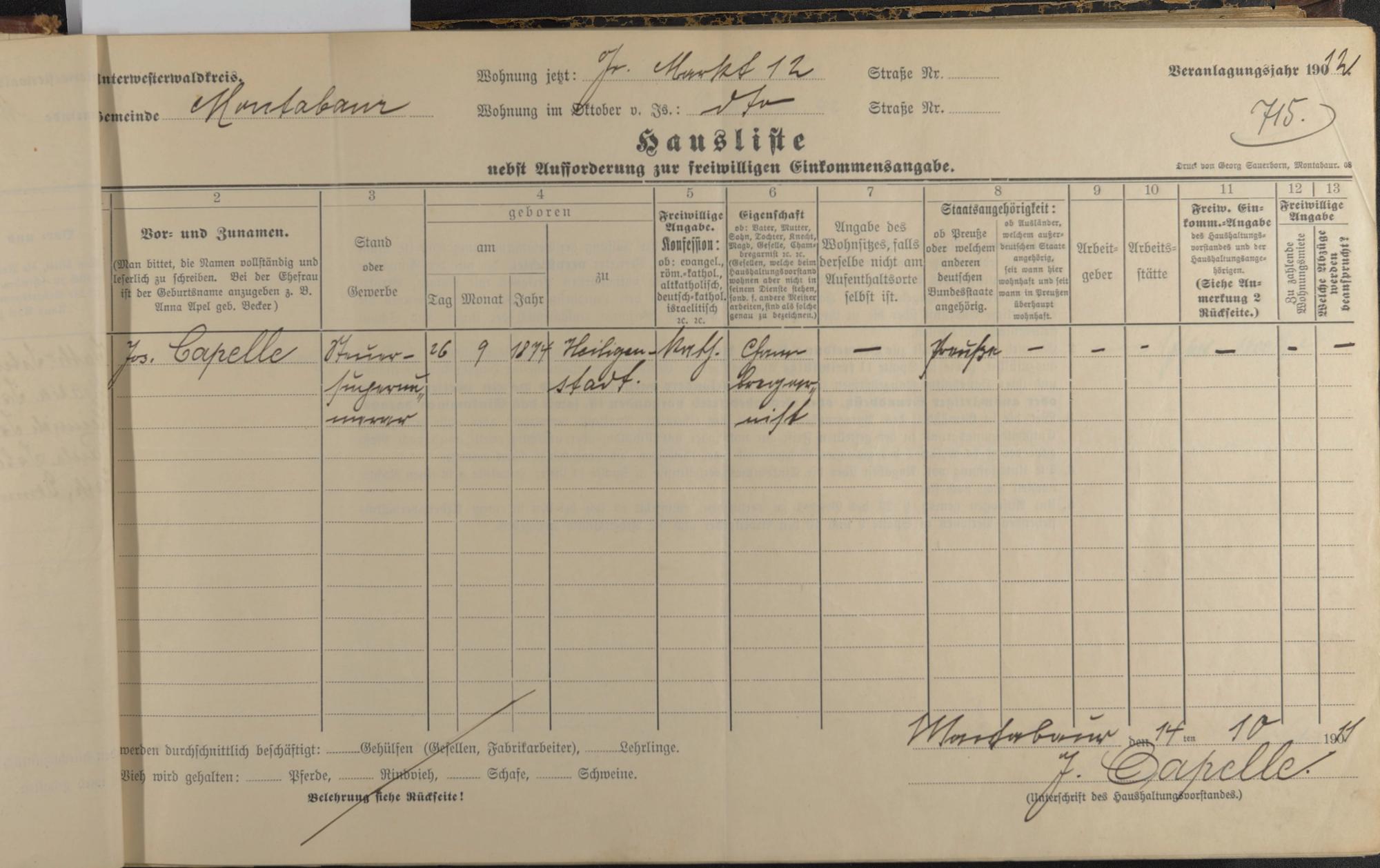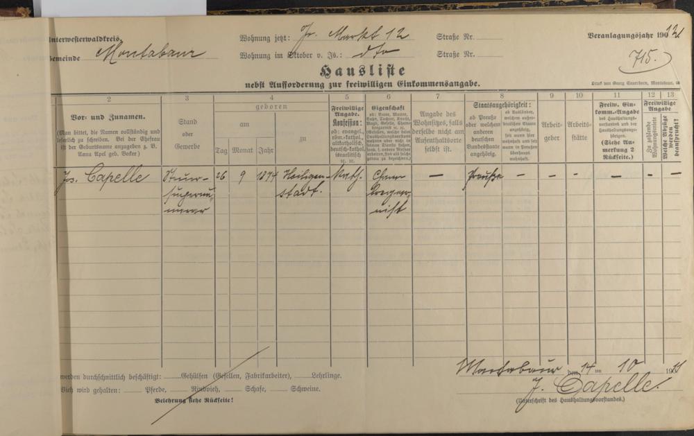 Haushaltsliste 1912, Band I. , Abteilung 4, A 274