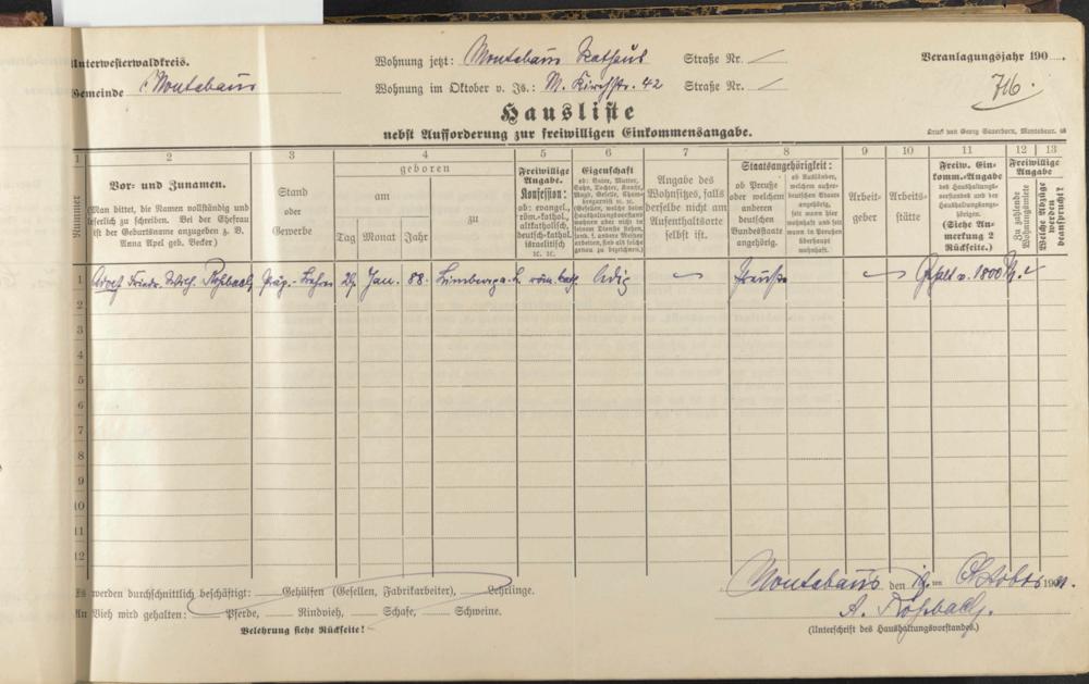 Haushaltsliste 1912, Band I. , Abteilung 4, A 274