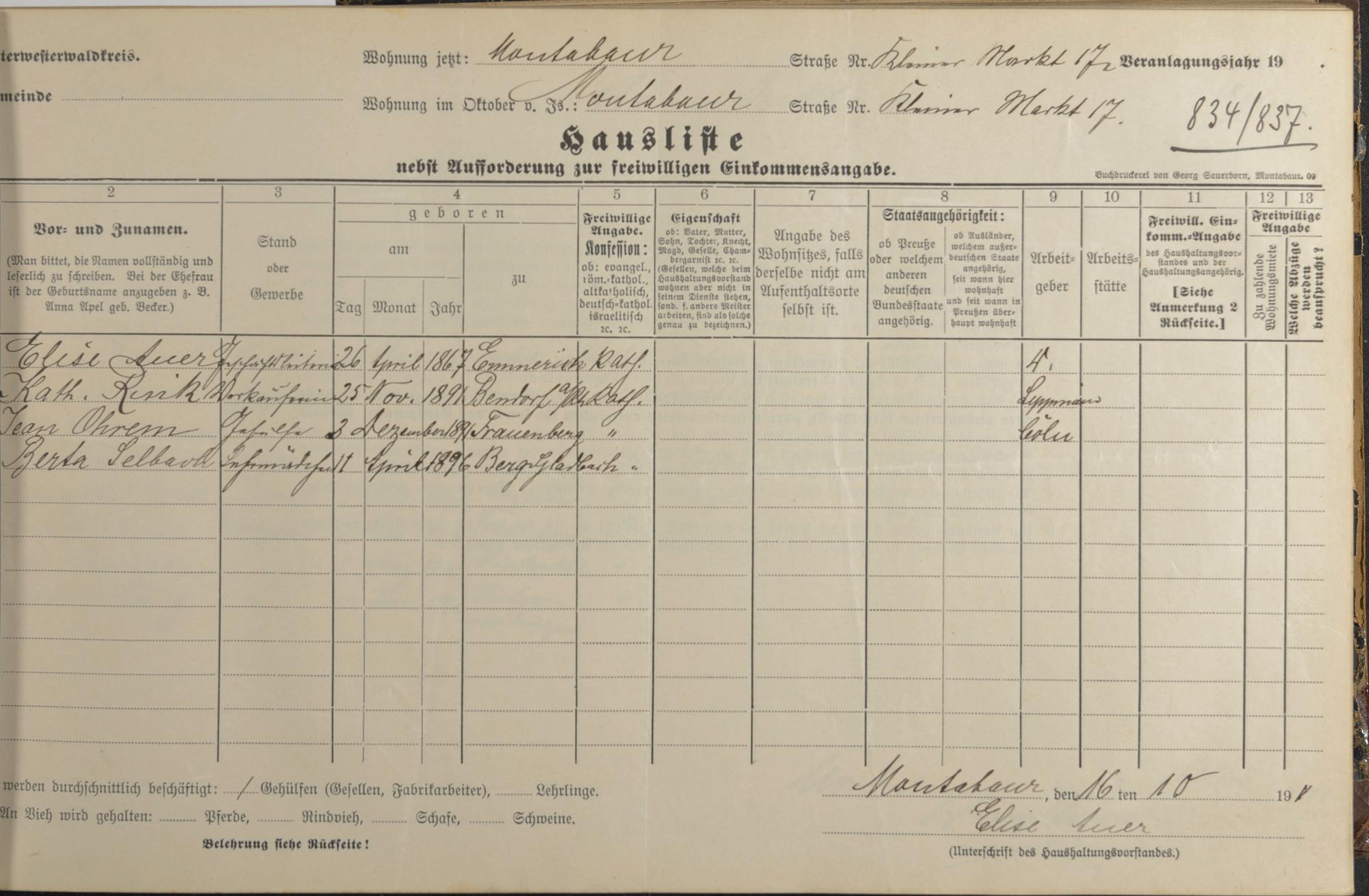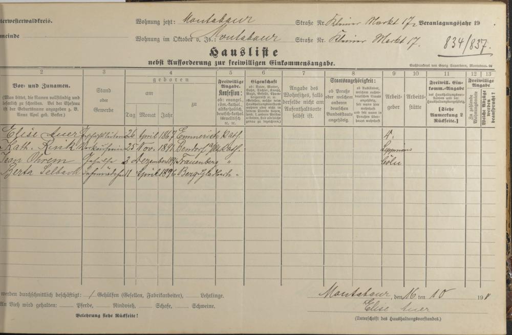 Haushaltsliste 1911/12, Coblenzer Straße bis Judengasse