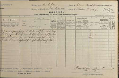 Haushaltsliste 1911/12, Kirchstraße bis Markt