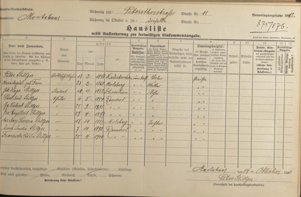 Stillger, Peter Stillger, Maria Magdal. geb. Fein Stillger, Jak. Hugo Stillger, Paul Isidor Stillger, Hubert Georg Stillger, Engelbert Stillger, Maria Margarete Theresia Stillger, Anna Amalia Stillger, Cäcilia Franziska