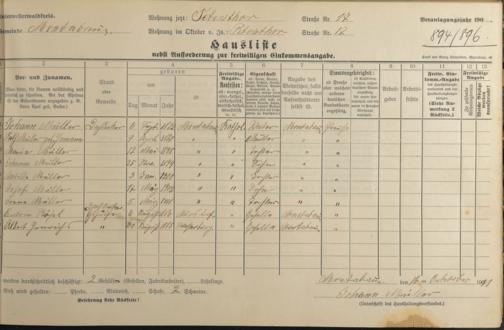 Haushaltsliste 1912, Band II., Abteilung 4, A 275 Haushaltsliste 1911/12, Peterstorstraße bis Rebstock Peterstorstraße