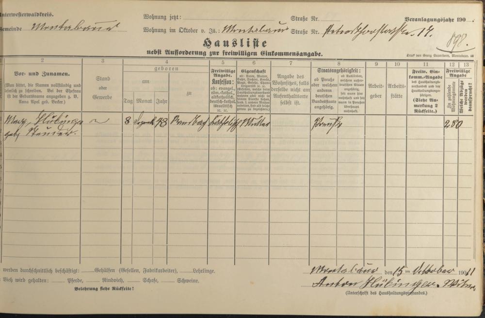 Haushaltsliste 1912, Band II., Abteilung 4, A 275