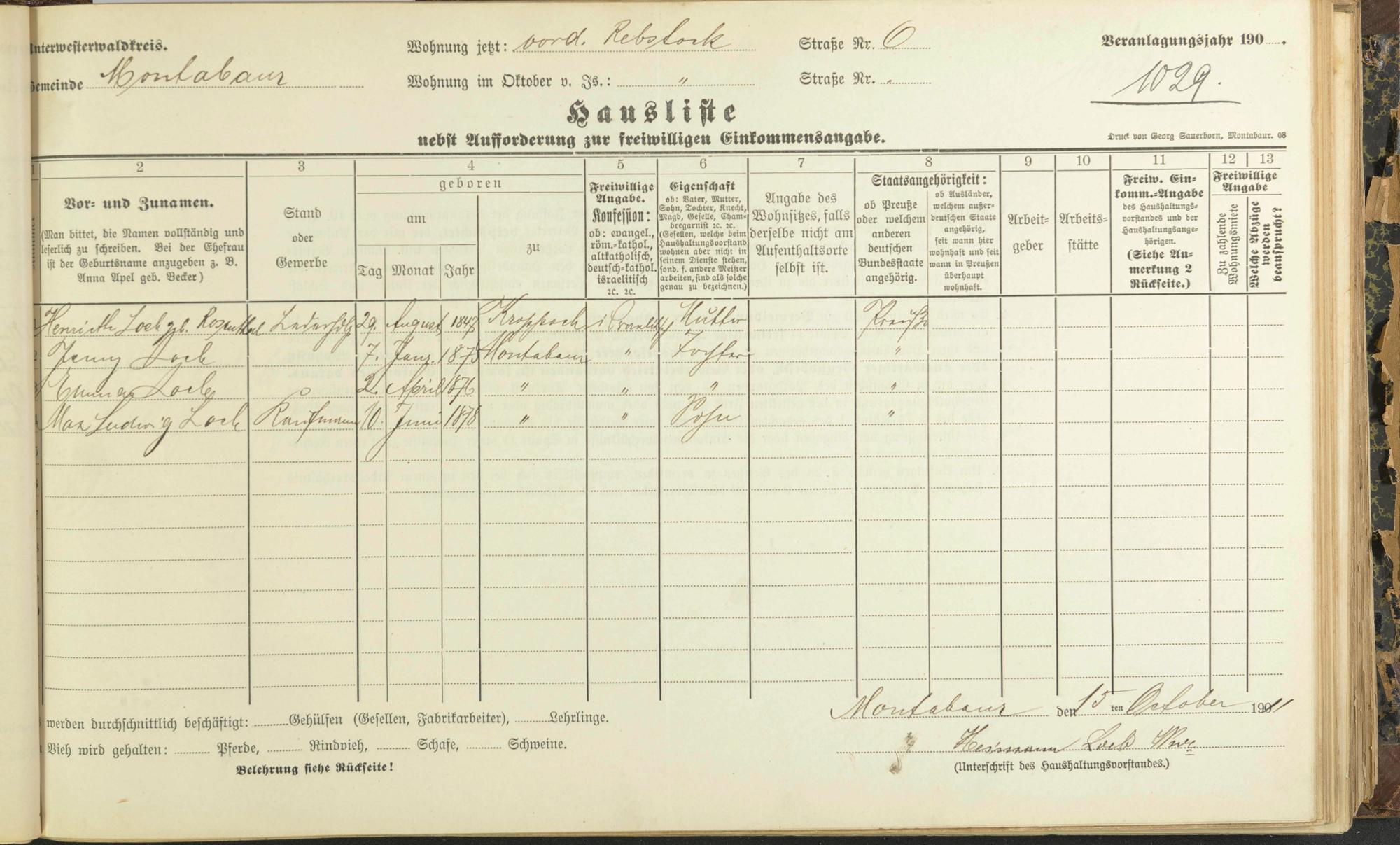 Haushaltsliste 1912, Band II., Abteilung 4, A 275