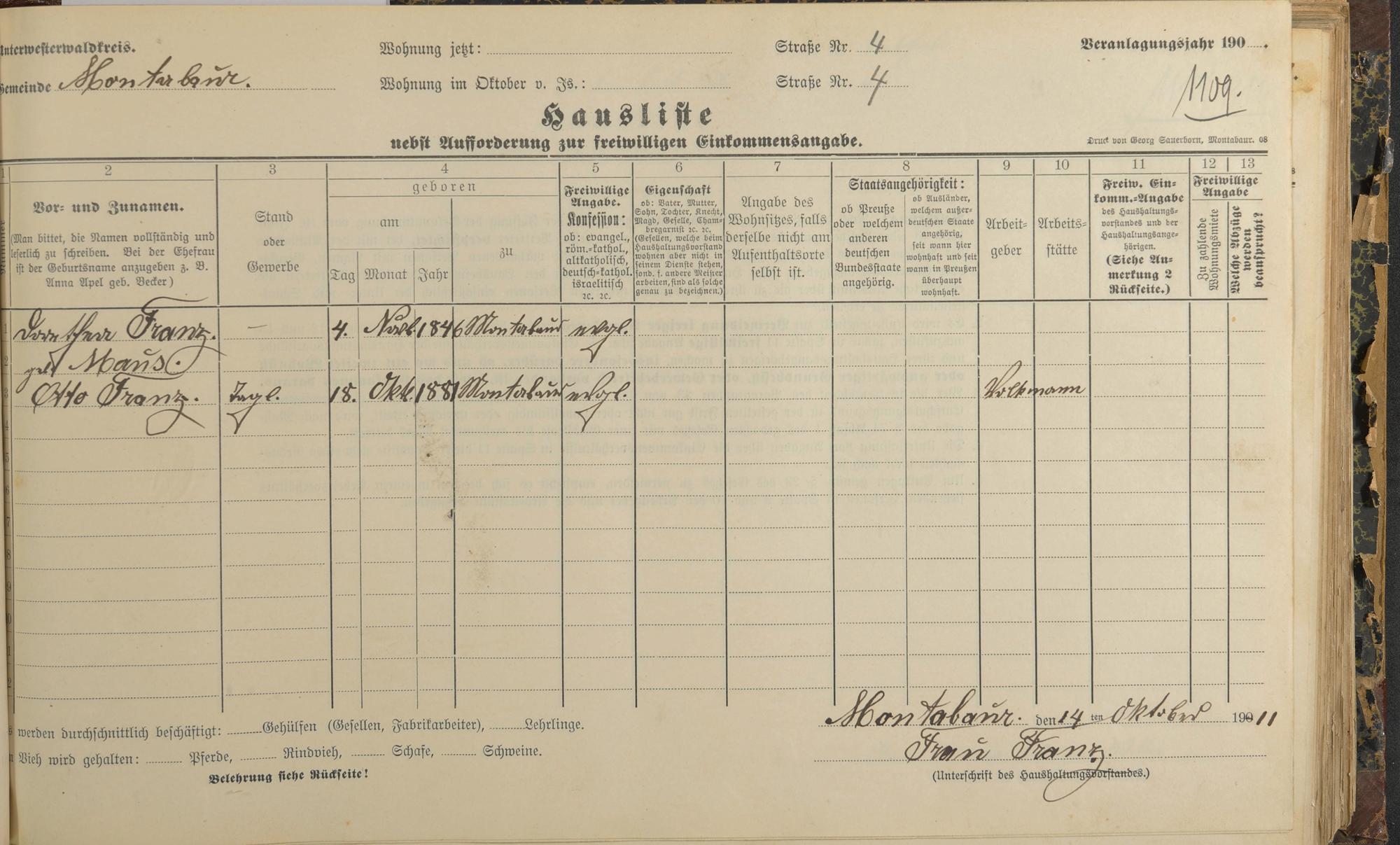 Haushaltsliste 1912, Band II., Abteilung 4, A 275