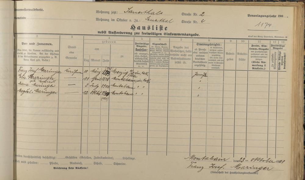 Haushaltsliste 1912, Band II., Abteilung 4, A 275